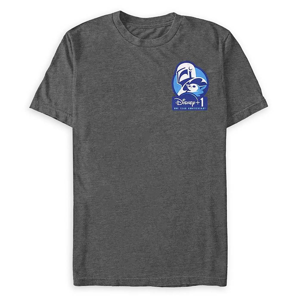 Star Wars: The Mandalorian Disney+ 1 One Year Anniversary T-Shirt for Adults ($24.99) - “The titular character from Star Wars: The Mandalorian is featured with the Child on this heathered jersey tee that celebrates our streaming service's one year anniversary with the ''Disney+ 1'' logo.”