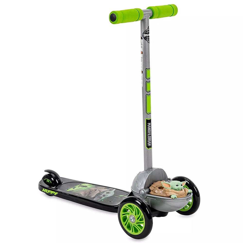 The Child Scooter by Huffy – Star Wars: The Mandalorian ($44.99) - Speed along with the Child as he rides on his hover pram at the front of this sleek scooter by Huffy. With bold graphics and design elements inspired by Star Wars: The Mandalorian, this sturdy stellar vehicle features a steel frame and fender brake to help as you whizz around the galaxy.”
