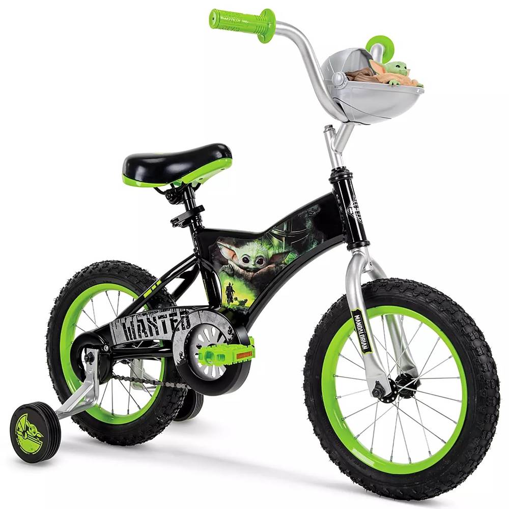 The Child Bike by Huffy – Star Wars: The Mandalorian – Small 12'' ($119.99) - “Speed along with the Child as he rides on his hover pram at the front of this stellar bike by Huffy. With bold graphics and design elements inspired by Star Wars: The Mandalorian, this sturdy vehicle features a steel frame and training wheels to help them whizz around the galaxy.”
