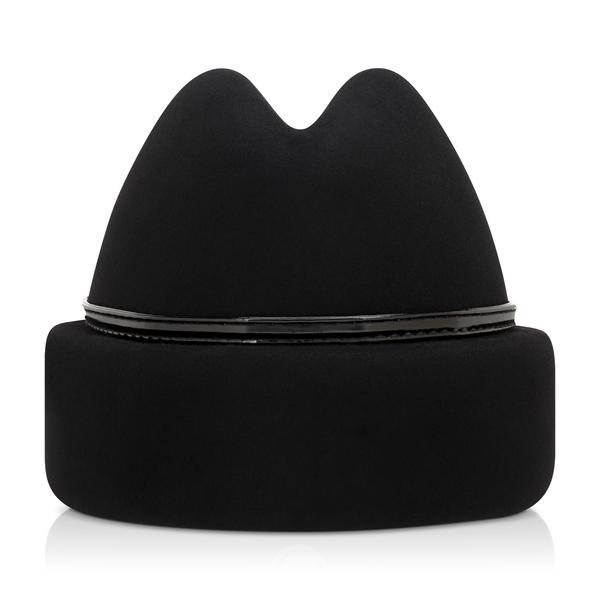 “The ‘Darth Vader Sharina' is hand blocked into a pinch crown with a defining cuff. Each piece has the addition of a hand sewn patent leather trim and black enameled hardware. A vintage Star Wars logo is printed in repeat on a silk damask interior sweatband. A truly limited edition collectible item that captures the essence of the Star Wars franchise.”