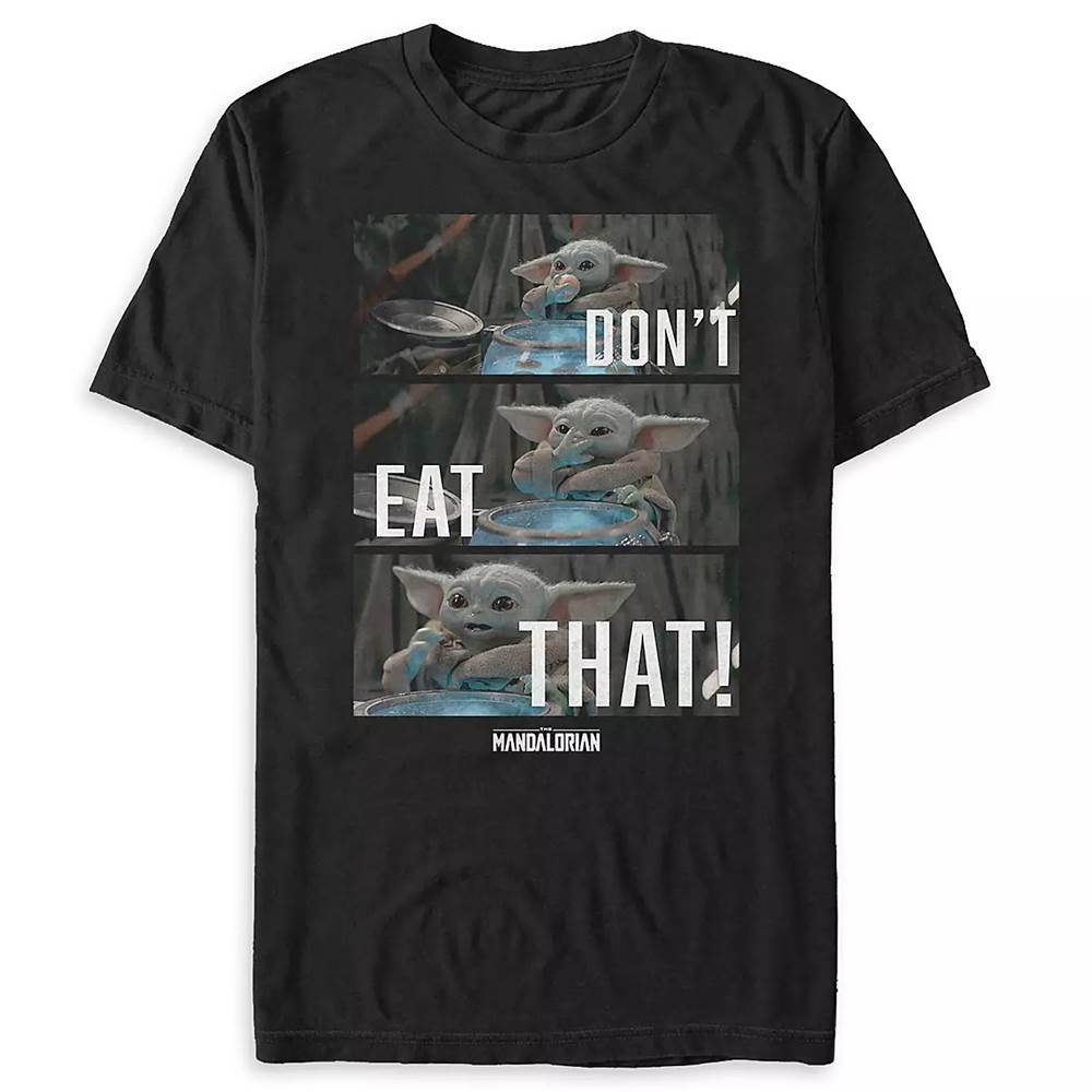 Star Wars: The Mandalorian Season 2 T-Shirt for Adults – Don't Eat That – Limited Release ($24.99) - “In the second season of Star Wars: The Mandalorian, Mando and the Child continue their journey, facing enemies and rallying allies as they make their way through a dangerous galaxy in the tumultuous era after the collapse of the Galactic Empire. Commemorate the new season with our limited release crew neck t-shirt featuring a design inspired by season two.”
