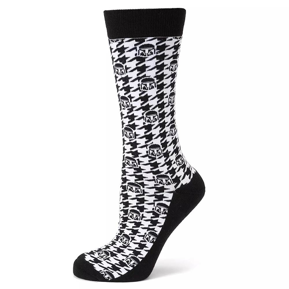 The Mandalorian Houndstooth Socks for Adults – Star Wars: The Mandalorian ($19.99) - “Members of the Mandalorian Guild never take off their helmets, and you may never want to take off these bold black and white houndstooth and miniature helmet patterned socks. Cushiony-soft with a comfortable calf band to keep them in place all day long, these socks are about to become part of your armor.”
