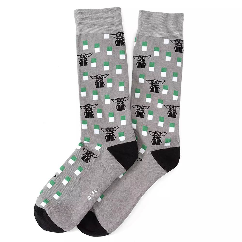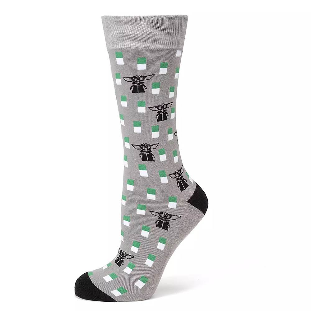 The Child Gray Socks for Adults – Star Wars: The Mandalorian ($19.99) - “Keep the Child close with this pair of gray socks with woven black figures of ''baby Yoda'' and a modernist pattern of green and white blocks. These cushiony-soft socks also have a comfortable calf band to keep them in place all day long.”