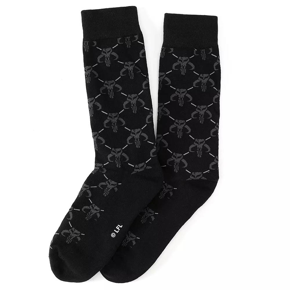Mythosaur Skull Socks for Adults – Star Wars: The Mandalorian ($19.99) - “The perfect socks for wearing under your Guild armor, these solid matte black socks feature a series of charcoal gray Mythosaur skull logos. The cushiony-soft fabric leaves your feet cozy and comfortable all day long—no matter where your adventures take you.”