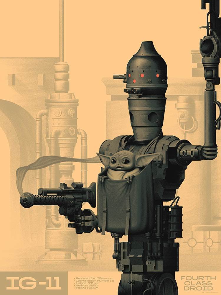 Fourth Class Droid Print from Acme Archives ($50.00) - “He may be a fourth class droid, but IG-11 is a first class caretaker for The Child, seen here strapped to the droid’s chest in an all-new, limited-edition print. Screen print, 18 x 24 inches, Hand-numbered edition of 200.”