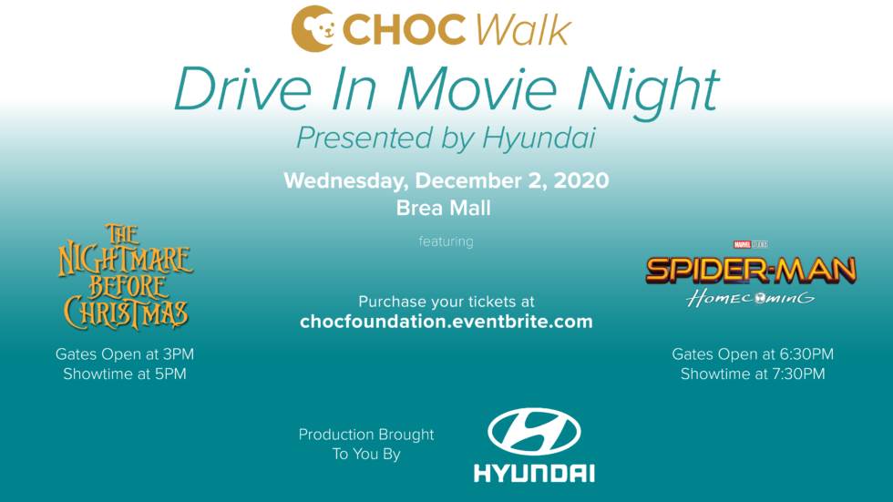 - CHOC is hosting a fundraising event called CHOC Walk Drive-In Movie Night on Wednesday, December 2nd at Brea Mall in Brea, CA.