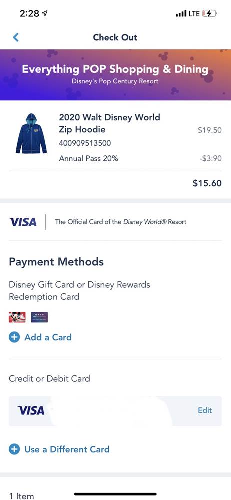 - After a guest completes their shopping trip, they can check out on the app with a linked form of payment, such as a credit or debit card. The app should also support Disney or other (Visa) Gift Cards for payment.