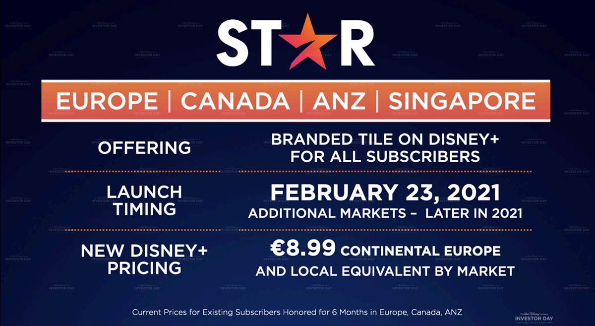 - Star programming on Dinsey+ will roll out in certain European countries, Canada, Australia, New Zealand, and Singapore beginning on February 23, 2021. It will roll out to other markets later in the year.