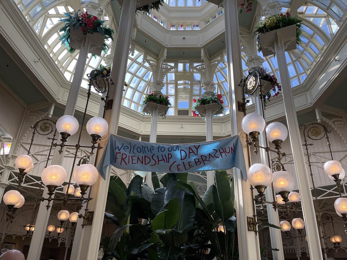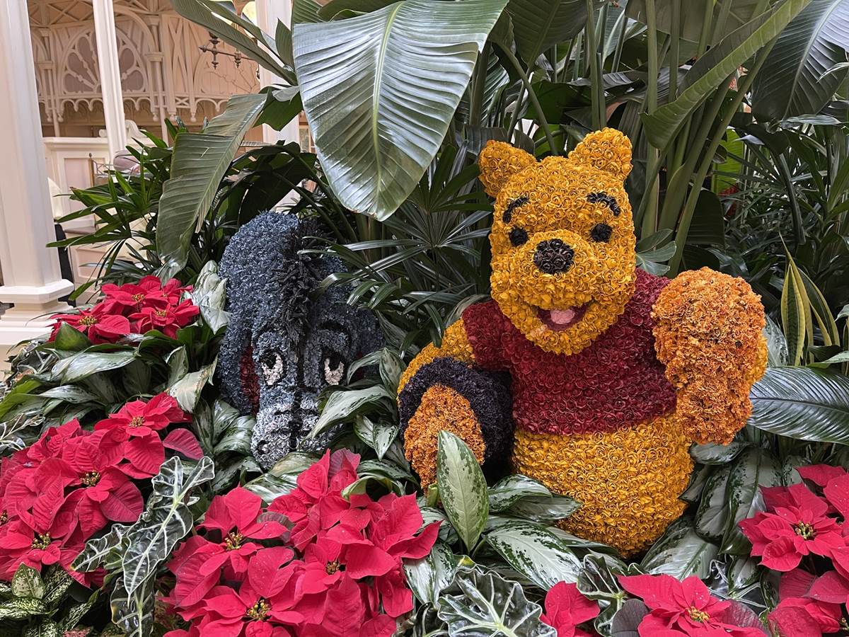 The most you’ll see of Pooh and his Hundred Acre Woods pals is through floral versions of them underneath the “Friendship Day Celebrashun” banner.