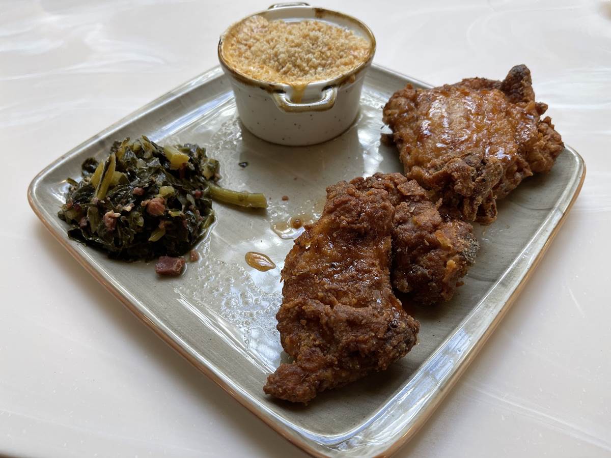 The other entree we tried is the Crispy Fried Chicken served with honey pot drizzle, macaroni and cheese and collard greens. The breading was good, but the chicken wasn’t meaty enough to make this dish special. The macaroni ended up being the biggest winner on the plate.