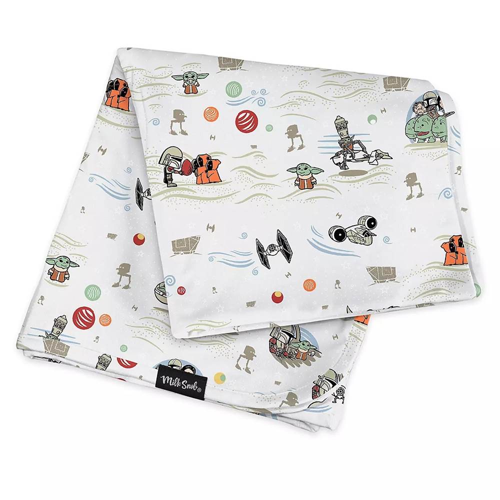 Star Wars: The Mandalorian Baby Blanket by Milk Snob ($46.99) - “Wrap your precious cargo up in this super soft blanket from Milk Snob that features allover adorable character art that includes the Child, The Mandalorian, IG-11 and more. Inspired by Star Wars: The Mandalorian, it offers the perfect mix of comfy and cozy—the premium blend fabric is breathable and cool to the touch, and can easily be rolled up for intergalactic travel.”