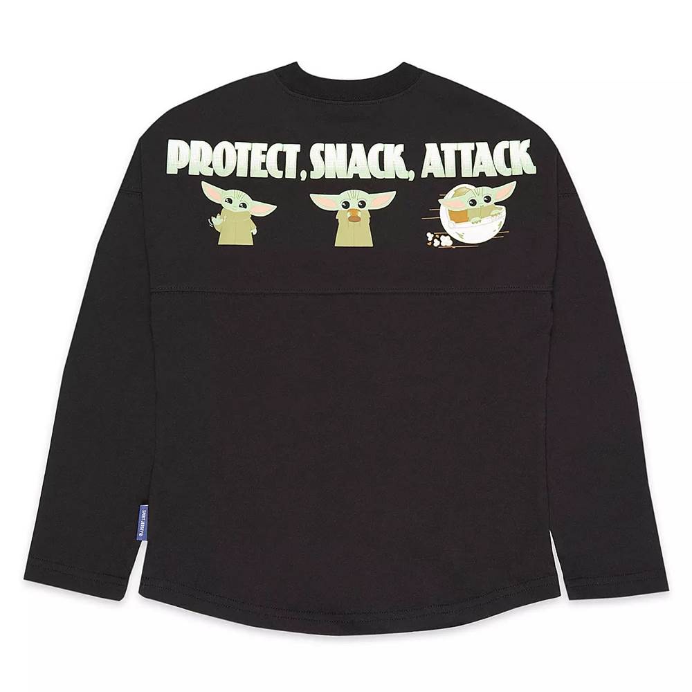 The Child ''Protect, Snack, Attack'' Spirit Jersey for Adults – Star Wars: The Mandalorian ($64.99) - “The Child knows how to keep it simple: ''protect, snack, attack.'' Tap into the power of comfortable fashion when you don this all-cotton Spirit Jersey featuring cartoon rendering of the character known as Grogu on the back and front.”