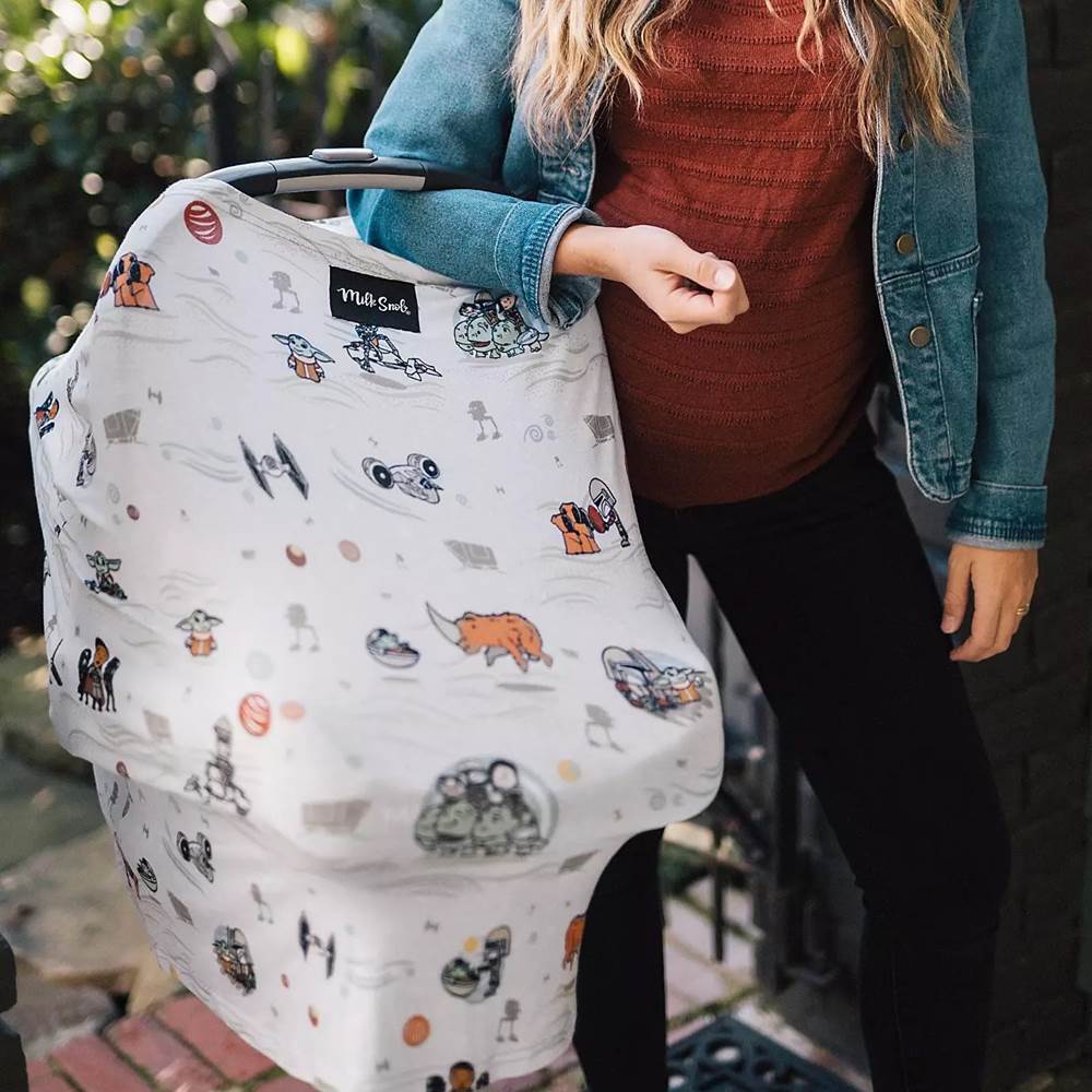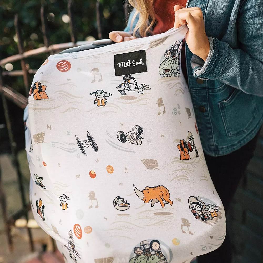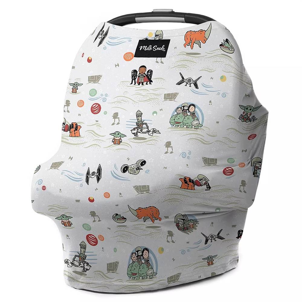 Star Wars: The Mandalorian Baby Seat Cover by Milk Snob ($40.99) - “Keep your precious cargo cozy with the help of an adorable cast of characters from Star Wars: The Mandalorian, including the Child, The Mandalorian, IG-11 and more. This baby seat cover helps protect your little one from harsh sunlight, wind, and The Empire. The versatile 5-in-1 design by Milk Snob can be used as a cover for infant car seats, nursing, shopping carts, high chairs, and more.”