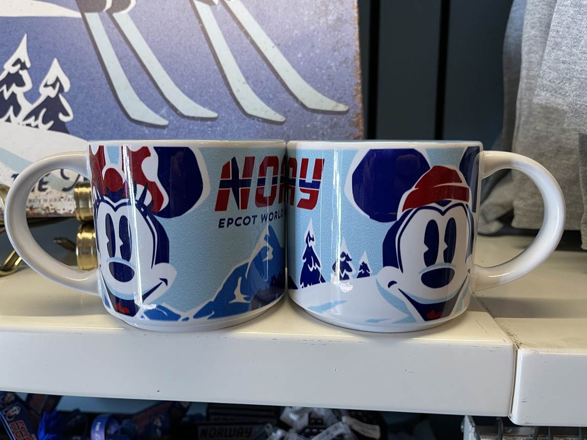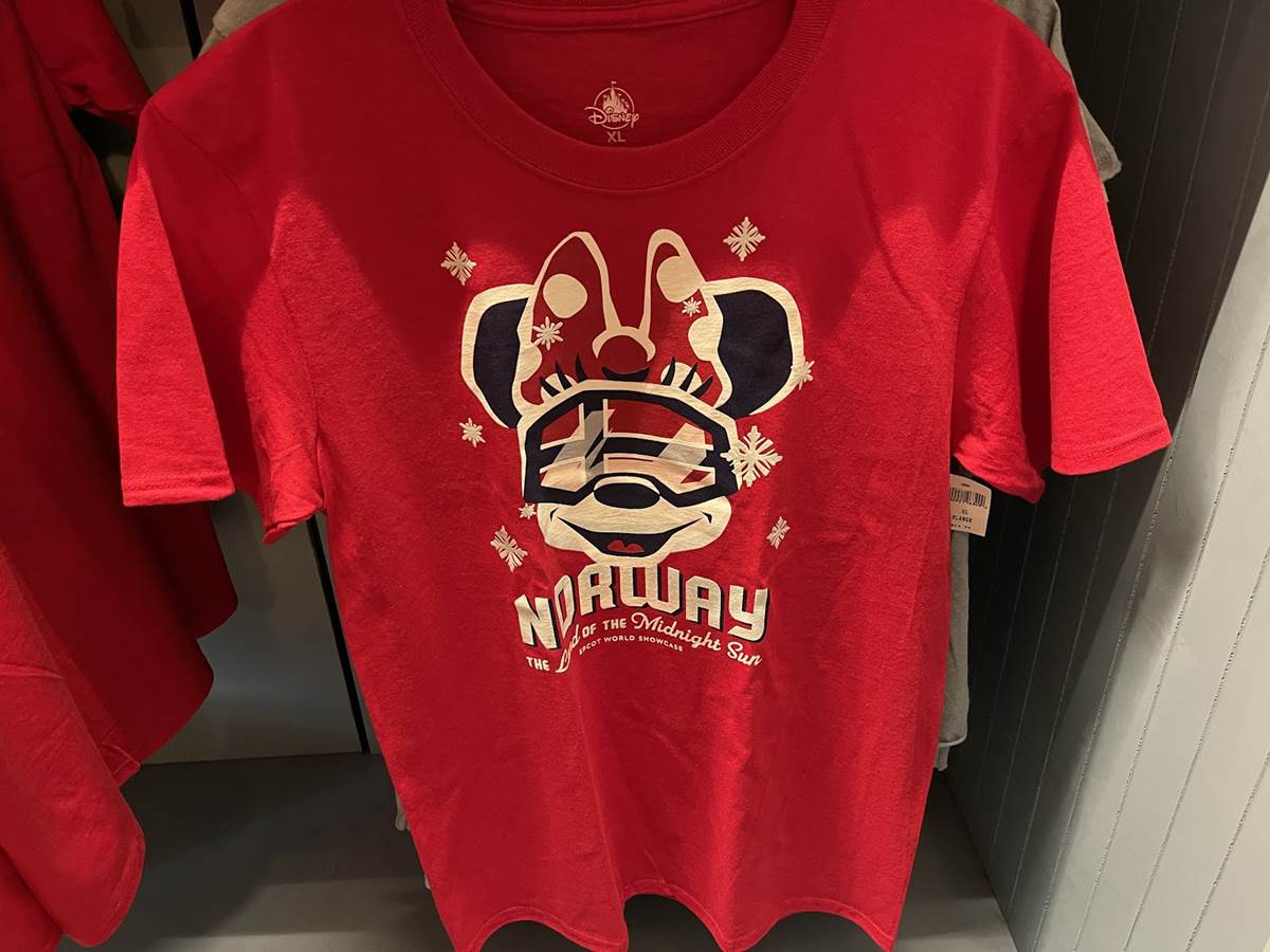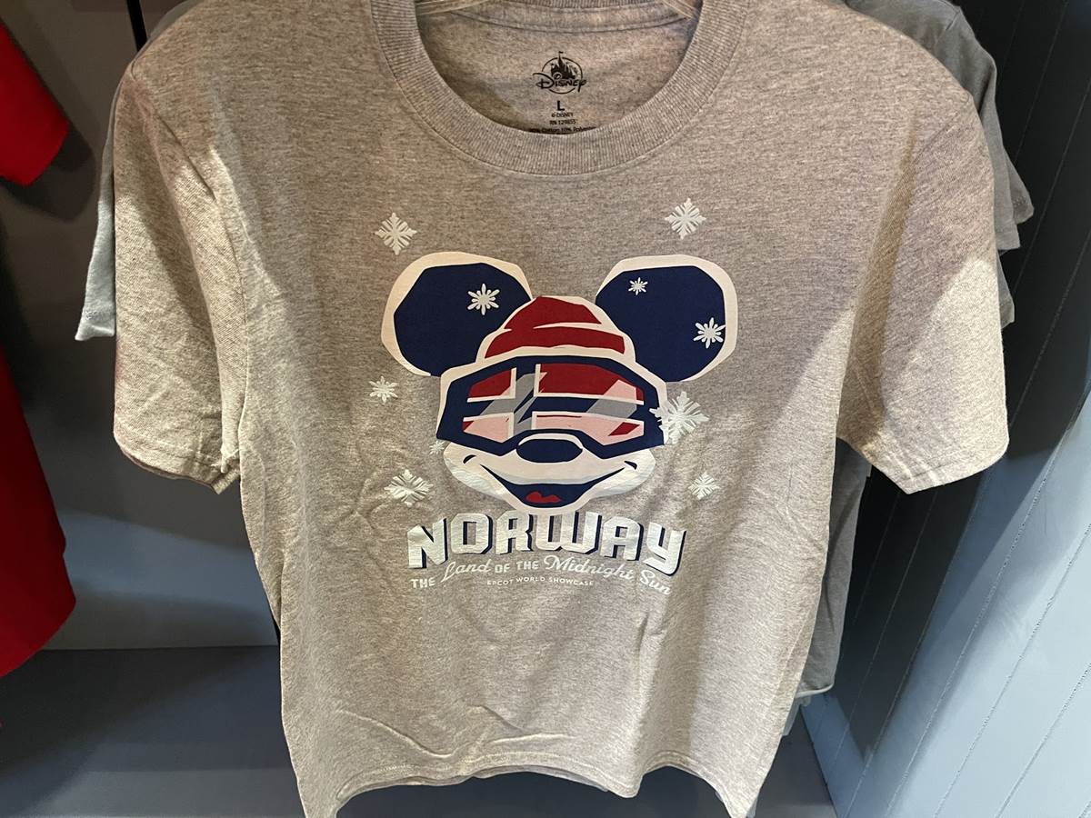 New merchandise has hit the shelves of the Norway pavilion in EPCOT’s World Showcase at Walt Disney World. The merchandise all has a “Ski Norway” theme featuring Mickey Mouse and Minnie Mouse wearing ski apparel. The phrase “Land of the Midnight Sun” is also emblazoned on many of the new goods offered as well.
