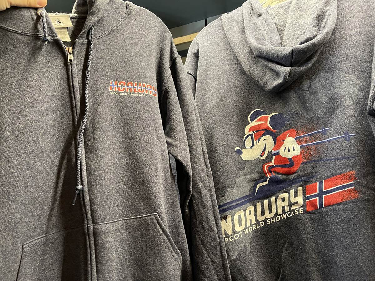 And lastly, also perfect for the cold weather, a soft hoodie that features “Norway” on the front with a skiing Mickey on the back for $54.99
