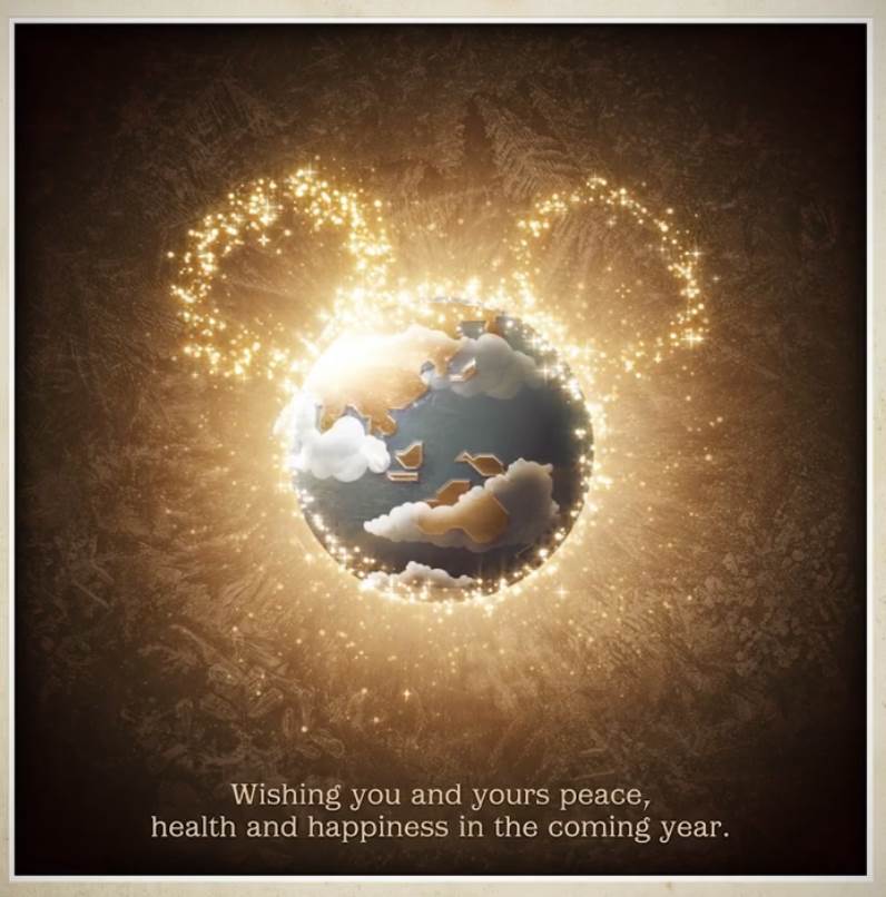 - The 30-second video shares WDI’s message of peace, happiness, and health to all this coming year in celebration of the holidays with a beautiful rendition of the world with Mickey’s ears sparkling around.