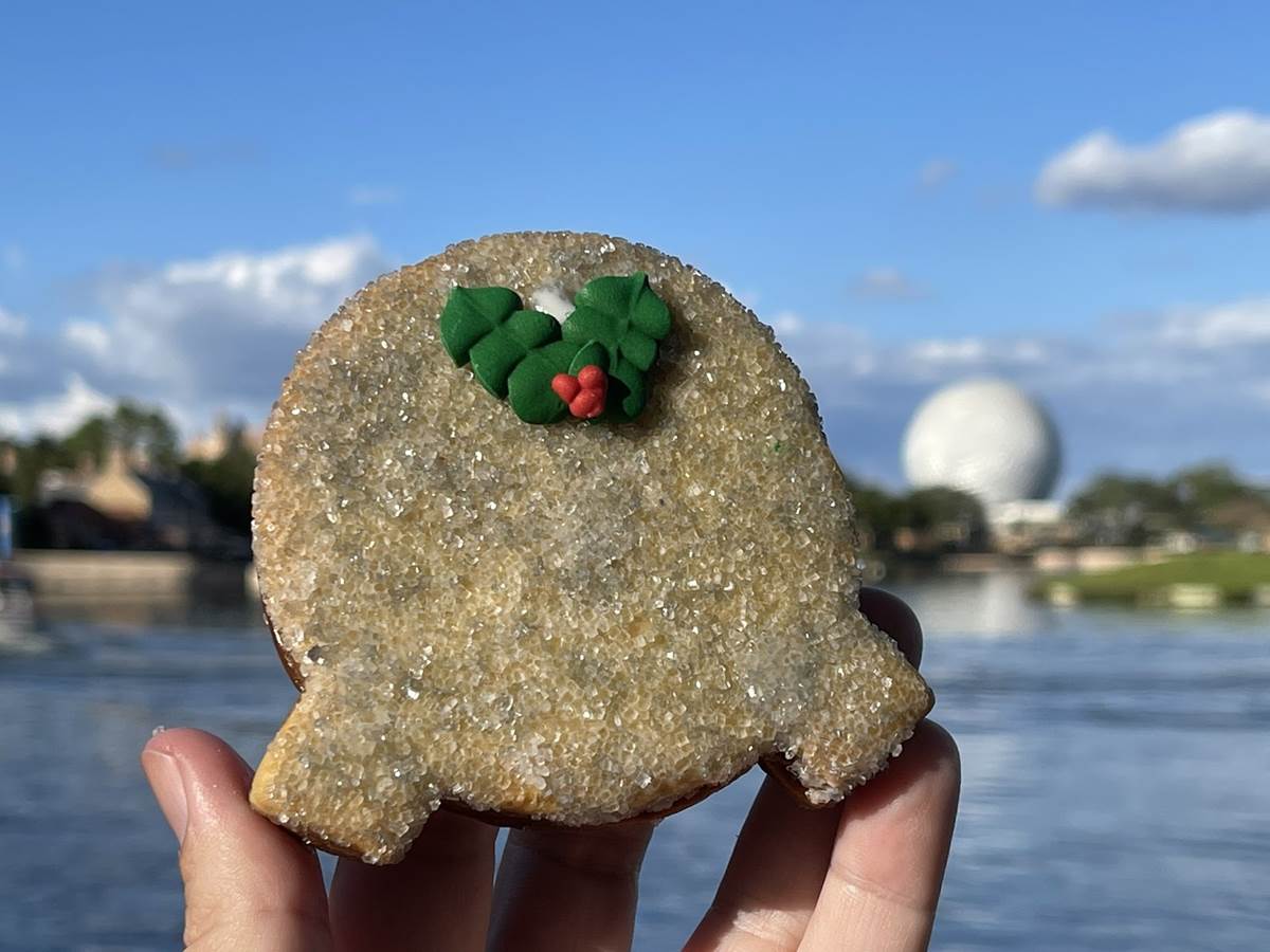 - Shaped like the EPCOT icon, this cookie has several components: vanilla and chocolate sugar cookies, salted caramel ganache, and royal icing.