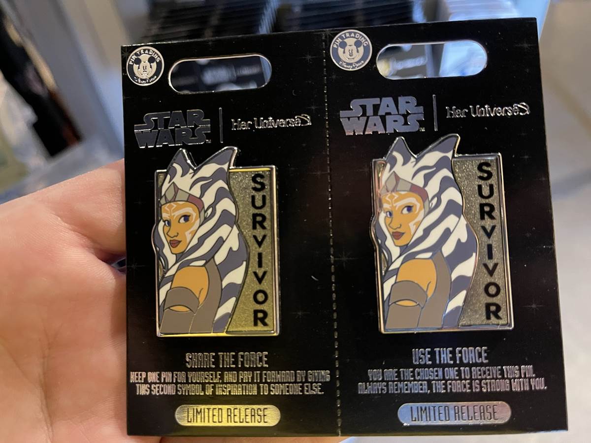 From Ashley Eckstein’s Her Universe comes a partnership with Disney Pin Trading where horines of the galaxy are celebrated in a 2-pin pack with a perforated card back for $19.99. Each pin was designed by Karen Hallion and they were announced almost a year ago. One is for you to keep, the other is for you to share. Each pin features an adjective that applies to the character featured, starting with Ahsoka Tano: “Survivor.”
