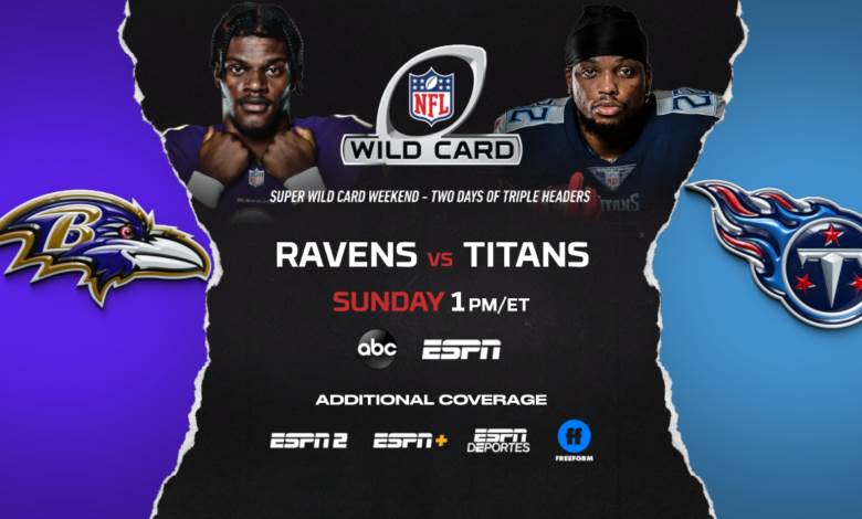 - ESPN has announced an NFL Wild Card MegaCast that’ll span a variety of channels all offering unique analysis and commentary on the Baltimore Ravens vs Tennessee Titans Wild Card game this Sunday.