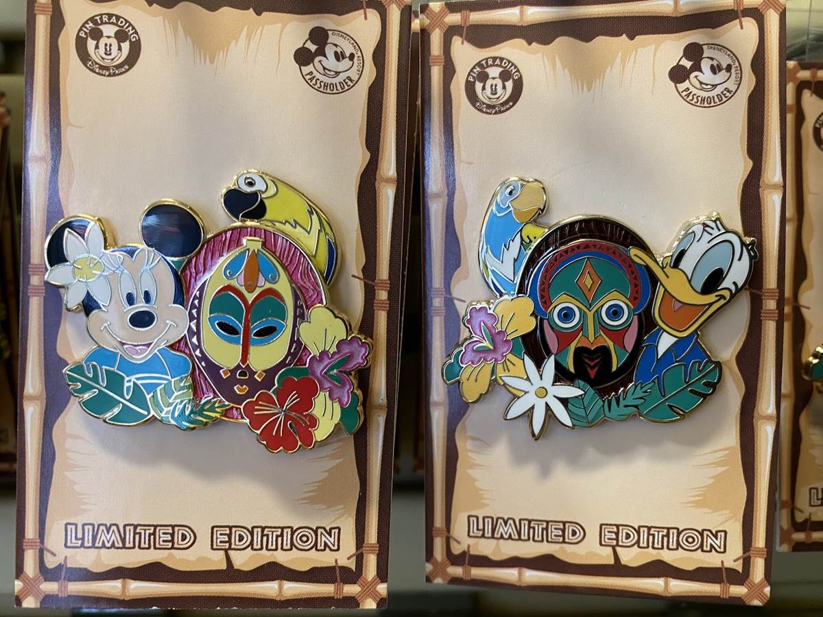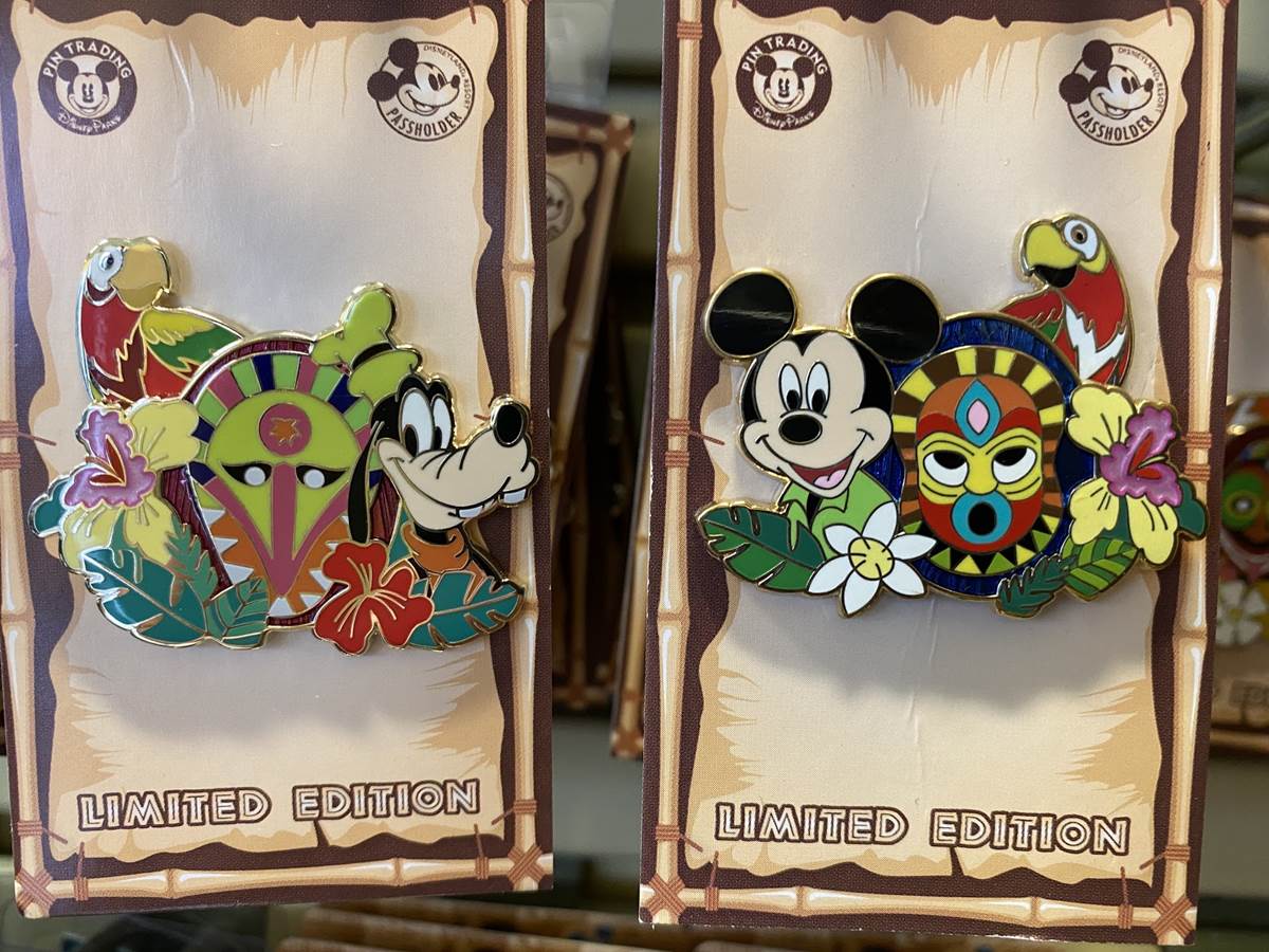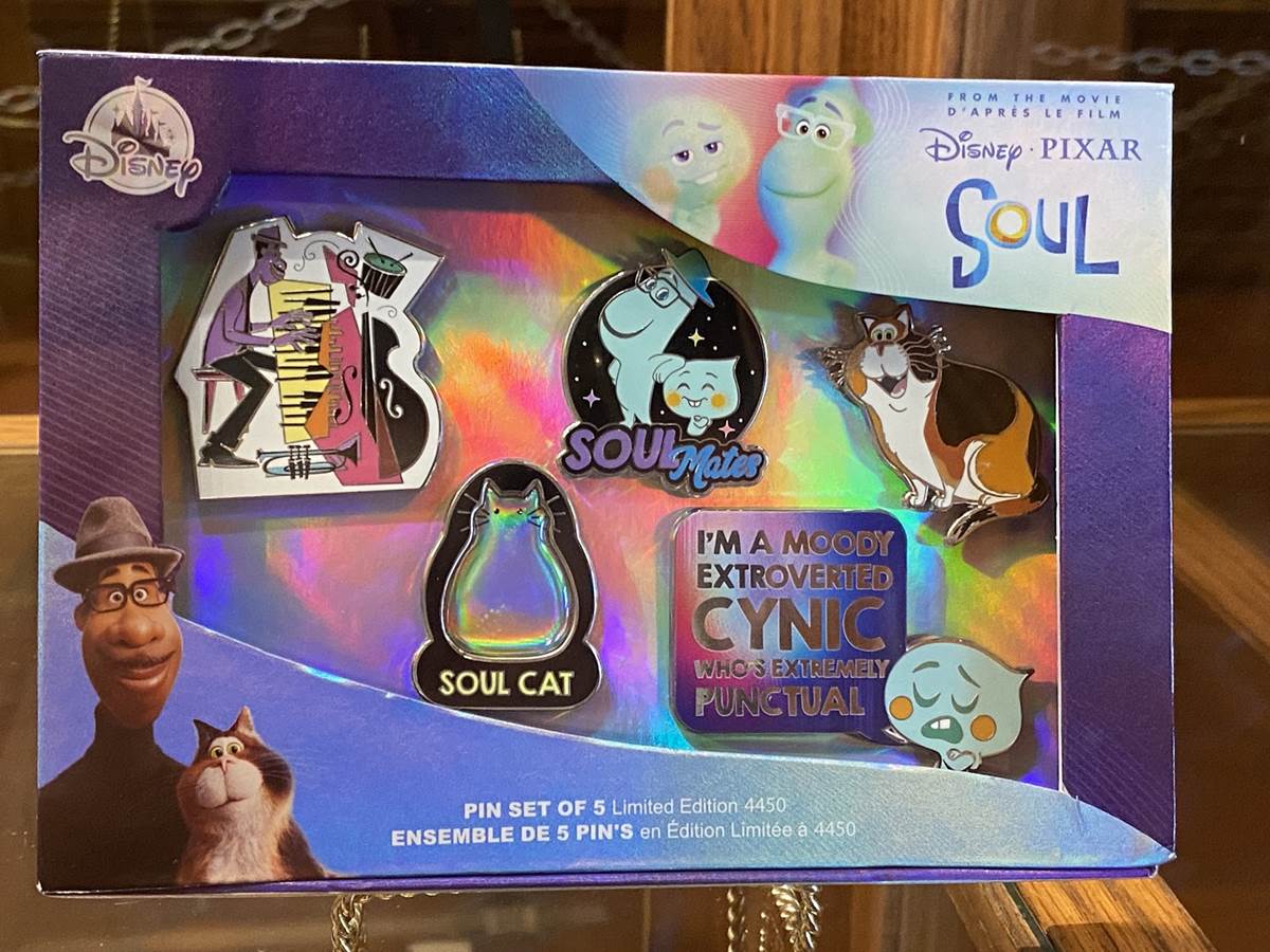 Holiday pins are still available, featuring characters, attractions, and hotel logos. There is also a series of Disneyland Passholder pins available as well, each featuring a classic character with a tiki theme. A box set featuring characters from the Pixar Animation Studios film, Soul, was also spotted.