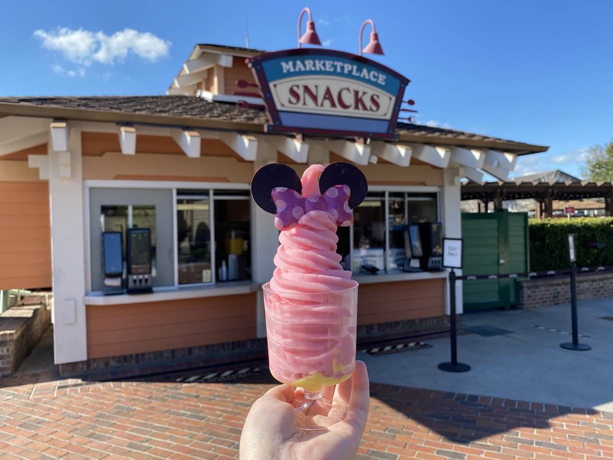 Marketplace Snacks is located in the Marketplace side of Disney Springs across from the Marketplace Co-Op and TREN-D.