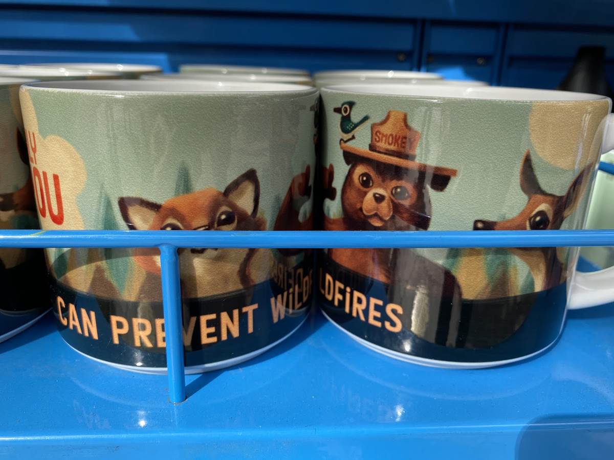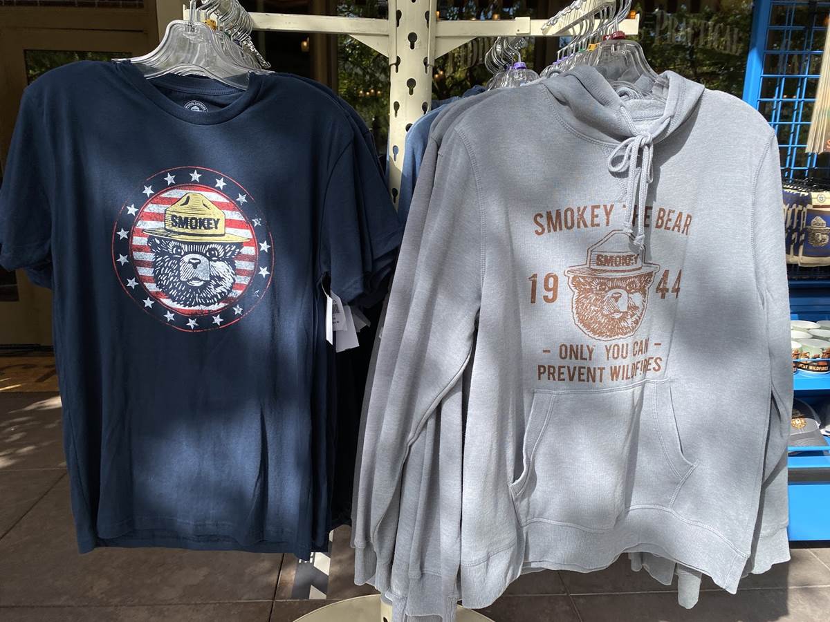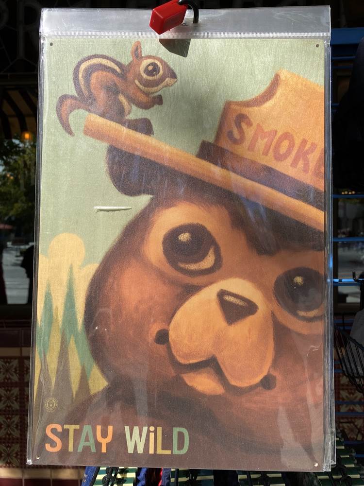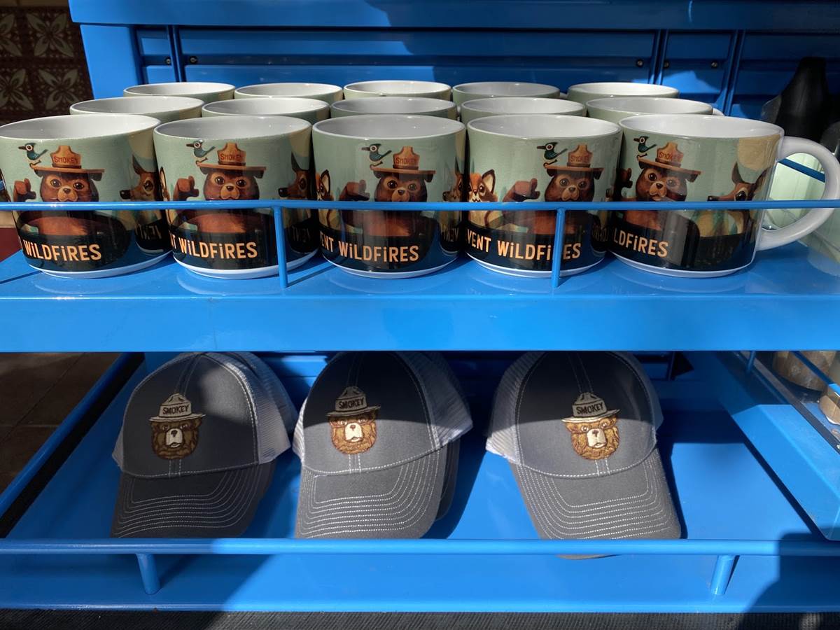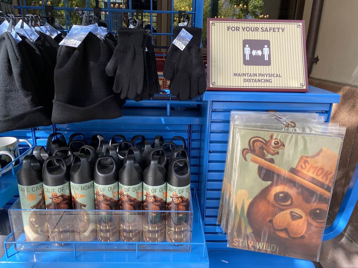 Outside of the Fiddler, Fifer, and Practical Cafe (Starbucks), a lot of Smokey the Bear merchandise has been staged at a kiosk outside. It was slightly jarring to see this merchandise here on Buena Vista Street, but makes some sense as Humphrey’s and Rushin’ River Outfitters in the Grizzly Peak area of the park are still closed, where we would likely find these goods under normal circumstances.