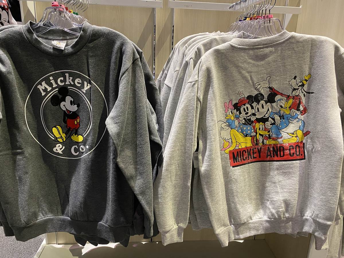With cold weather approaching we found some heavier sweatshirts to help keep us warm in the Backlot Premiere Shop, featuring classic characters like Mickey, Minnie and friends.
