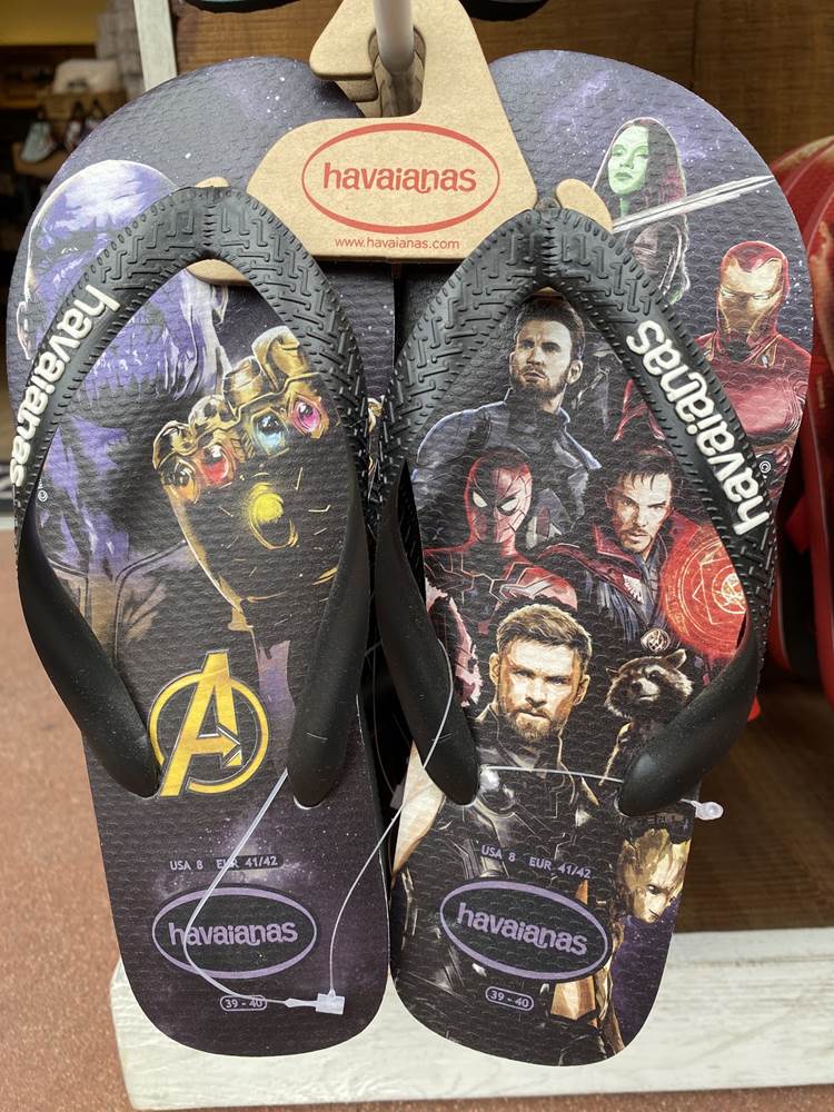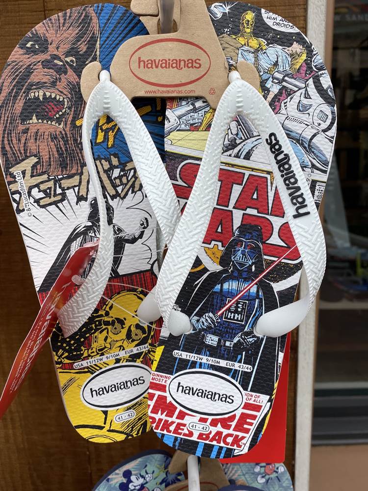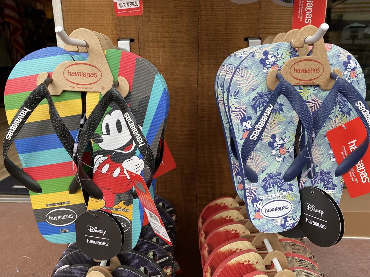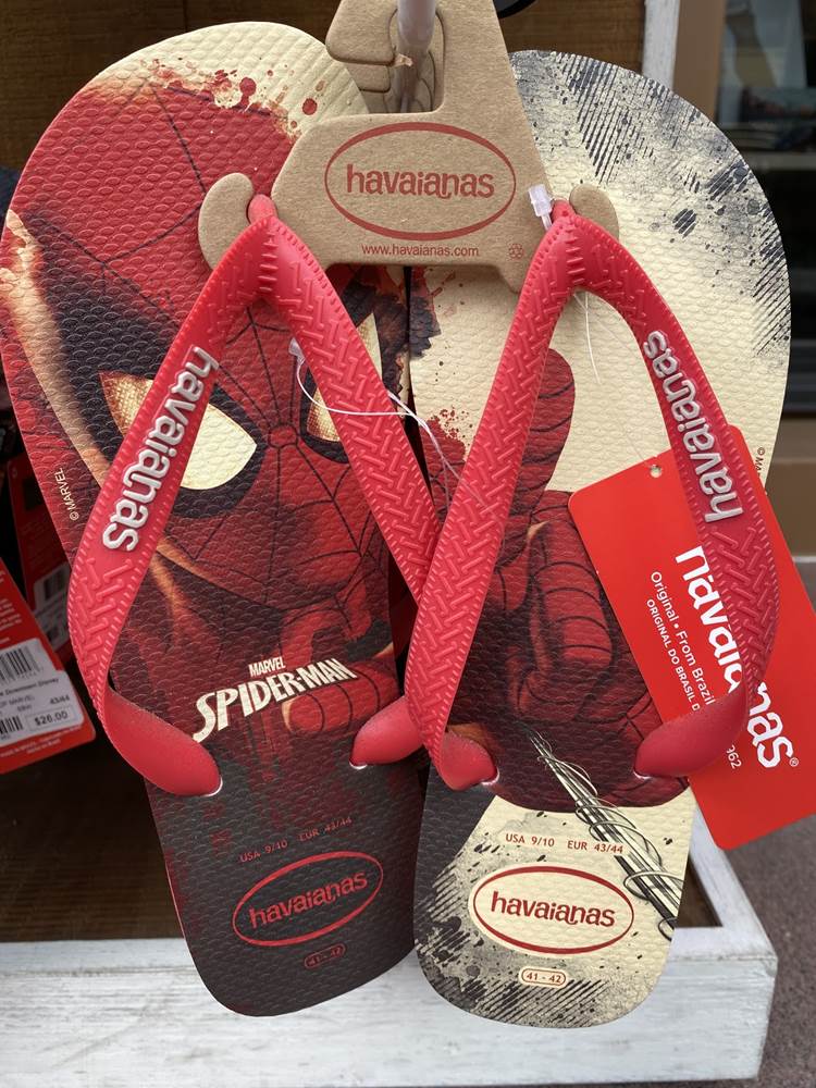 And lastly, we found some themed fun footwear from Havianas that features not only Mickey Mouse, but other pairs featuring the Avengers, Spiderman, and various Star Wars characters in a single print.