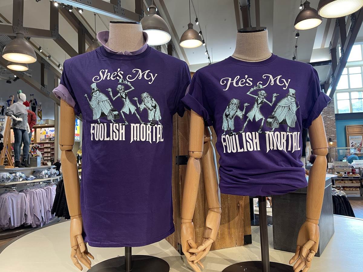 Staying on the Valentine’s Day theme, there’ve been a lot of couples shirts over the years, but none quite as frightful as these, inspired by The Haunted Mansion. Be sure to stay attached to your “Foolish mortal.”