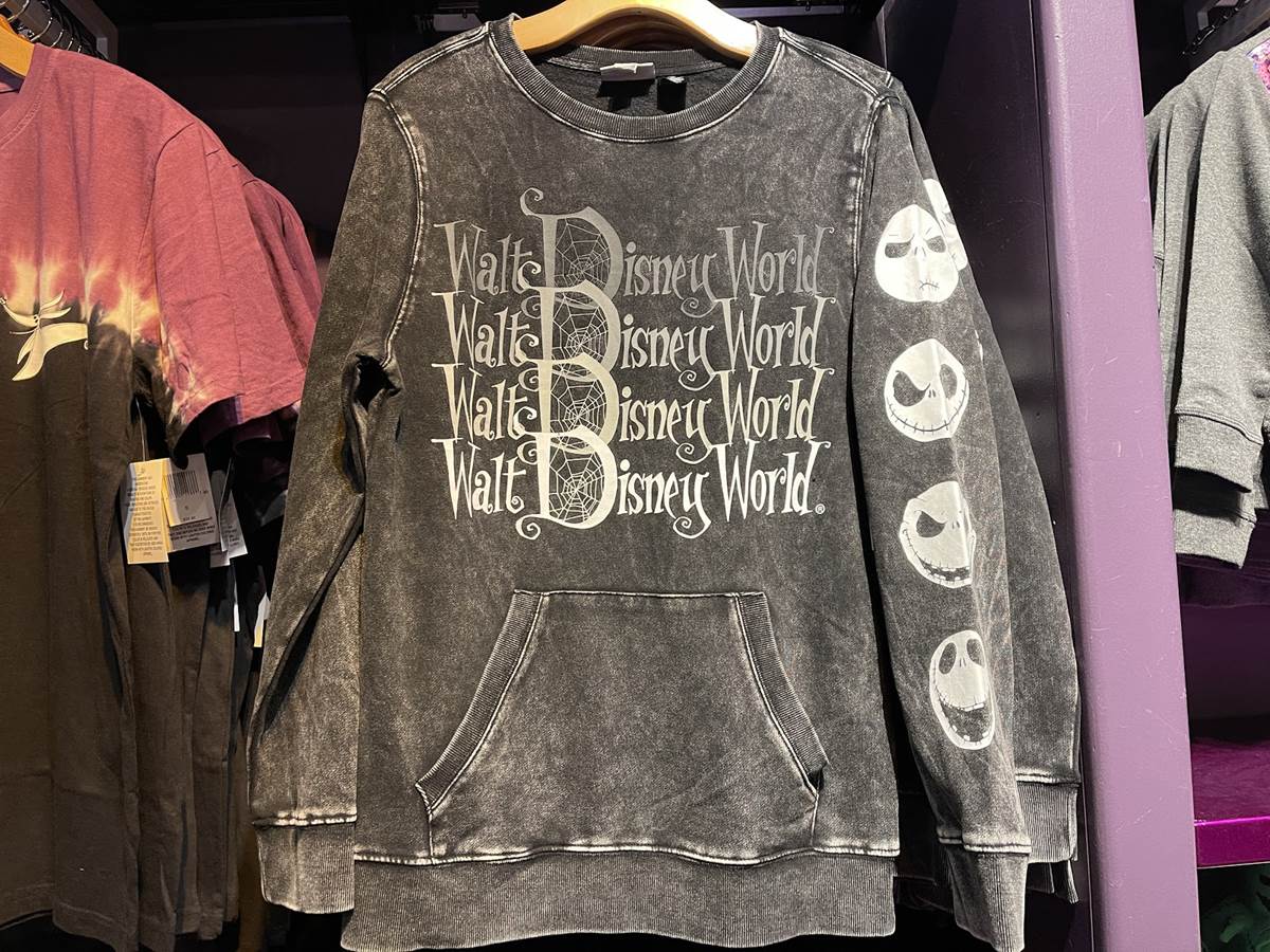 Are shades of red, pink, purple and white not your speed? This new Walt Disney World comfy shirt with pockets will make any fan of Tim Burton’s The Nightmare Before Christmas fall head-over-heels.