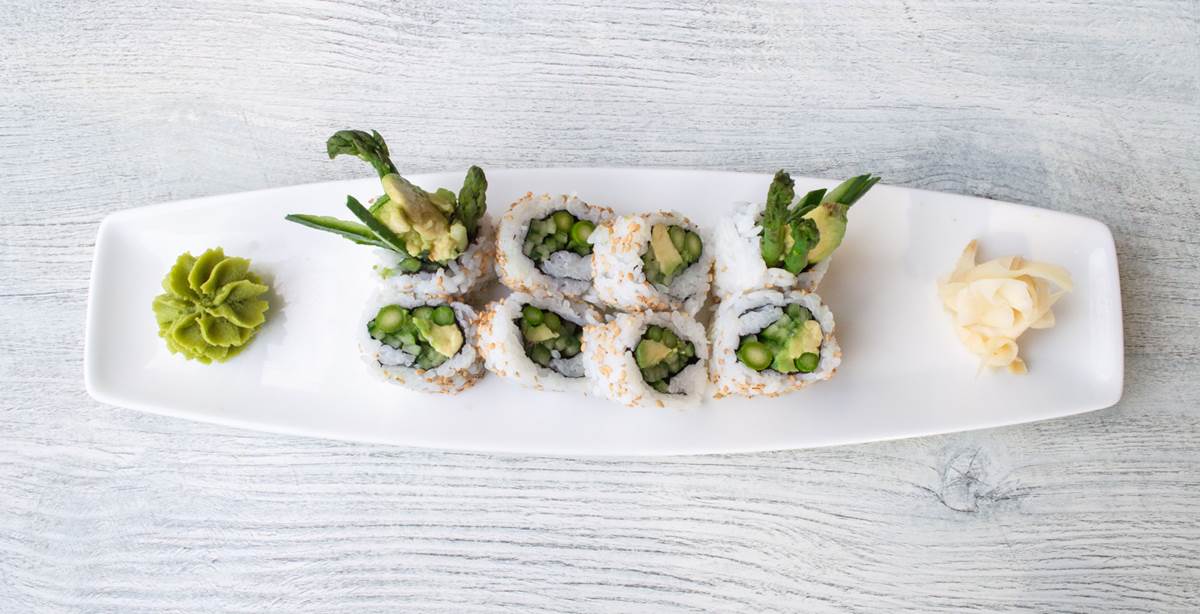- Description: A combination of fresh avocado, cucumber and asparagus rolled to perfection