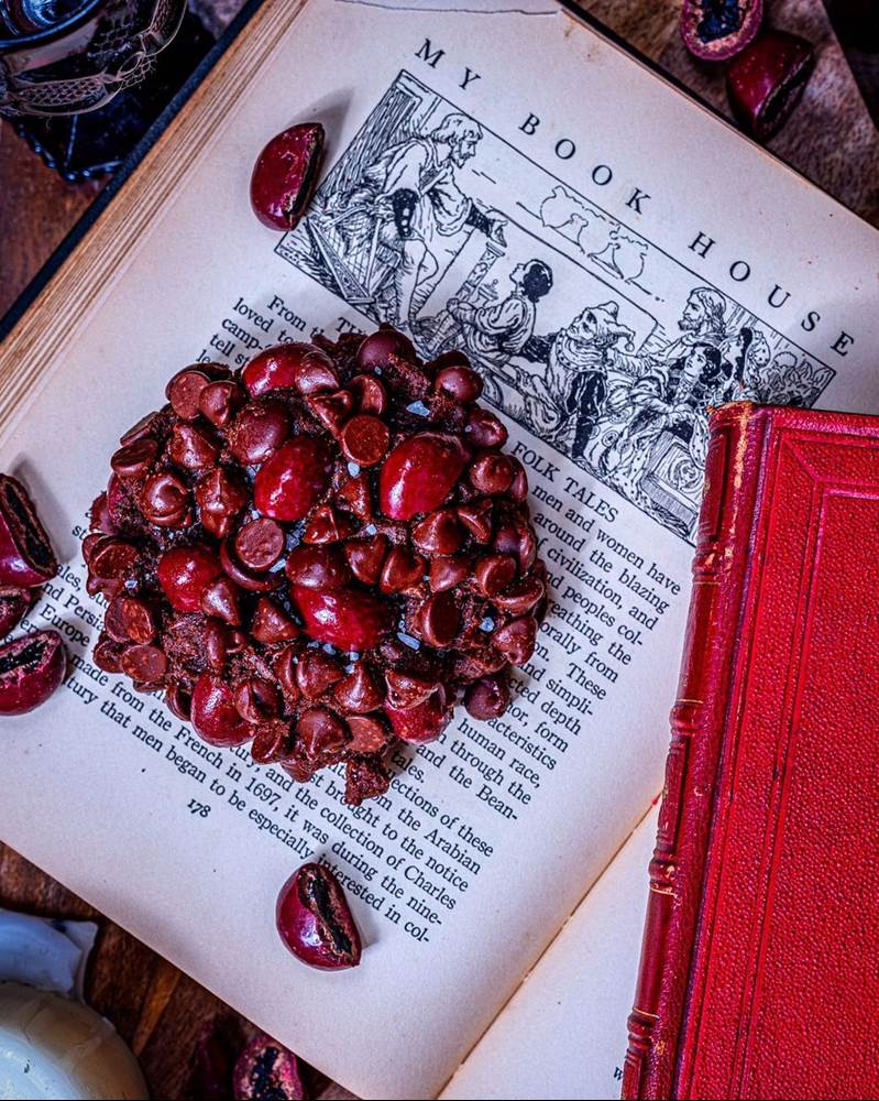 - “The Eternal Flame is our Velvety Five Flavor Chocolate Cookie laced with our special house-made Ancho, Cayenne, and Cinnamon Spice Mix and topped with Chocolate Covered Cherries. It's a deep chocolate flavor followed by the tingling warmth of a first kiss and sweet aftertaste of cherries. The one you've been waiting for your entire life is here, and it loves you without condition, eternally.”