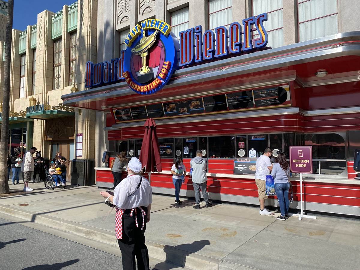 Back in HollywoodLand, guests can eat at Award Wieners once again, and have been provided tables in which to do so.