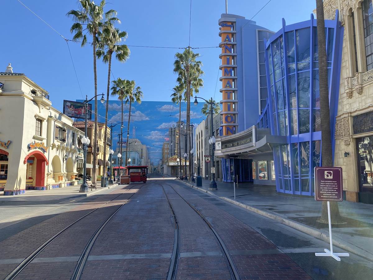 Further down Buena Vista Street near the entrance of the park, we can see that the Red Car Trolley has been relocated out to the stop in front of Oswald’s, allowing for much easier photo opportunities.