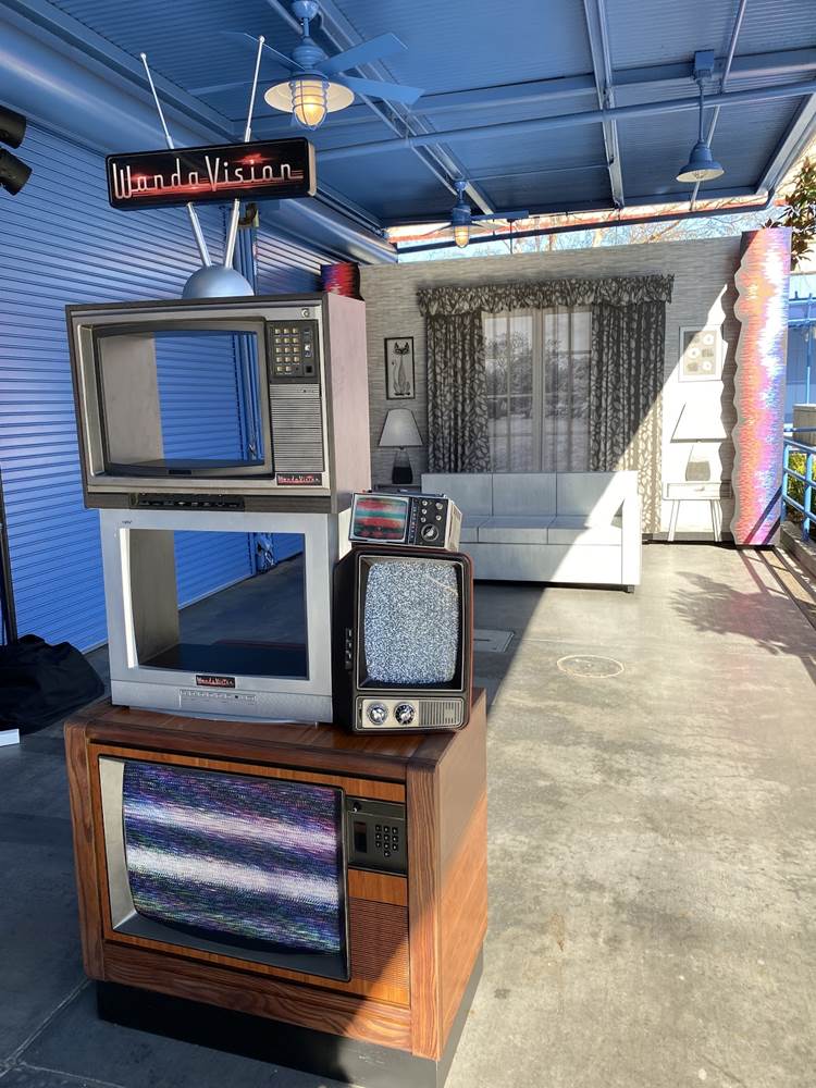 - The setup makes guests seem as though they are inside Wanda’s sitcom world and even uses an old television frame.