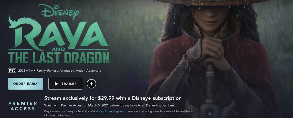 - Starting today, guests can pre-order Raya and the Last Dragon with Premier Access for $29.99 on Disney+.