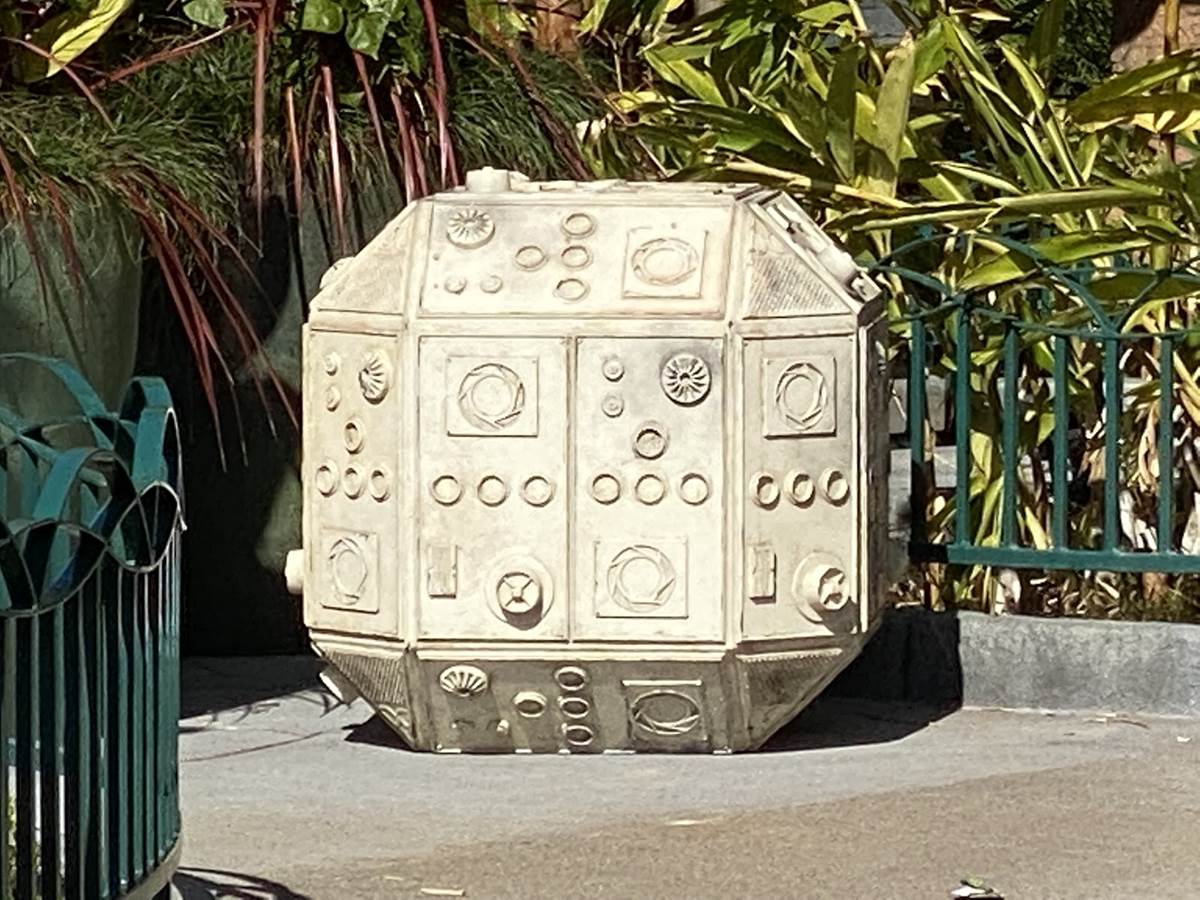 Earlier today, we were at the Downtown Disney District of the Disneyland Resort, and we were able to get a peek on the progress of the Star Wars Trading Post that will be opening soon in the former location of Rainforest Cafe, including the appearance of Rey’s Speeder.