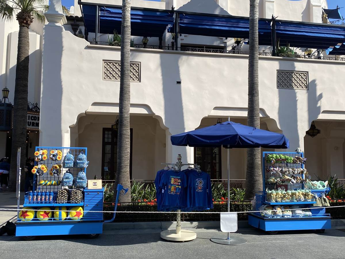As was promised, a slew of merchandise celebrating the occasion was also released today, including the requisite pins and t-shirts. A new stand near the Carthay Circle offered the T-Shirt, a hooded long-sleeve shirt, and a water bottle celebrating 20 years of the park, along with some Pixar themed merchandise.