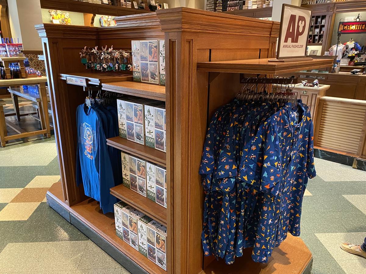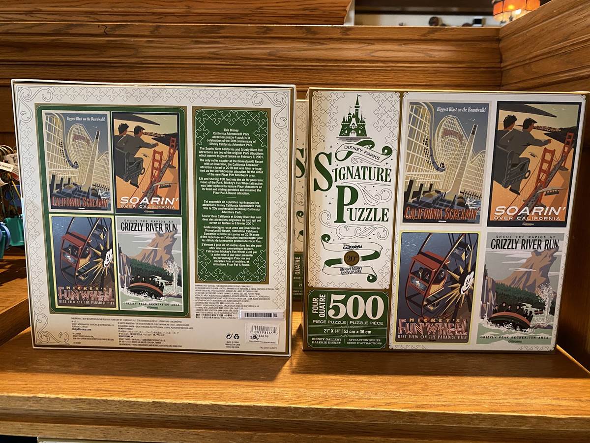 Over in Elias and Co and Los Feliz Five and Dime, you can find the anniversary pins, as well as the aforementioned T-Shirts, and long sleeve shirts. There is also a short-sleeved button down shirt that features various iconography from the park, as well as a pocket T-shirt that has the Big Cheese himself poking out of the pocket. There is also a keychain with Mickey, Minnie, the Park Logo, and the Sun/Fun Wheel/Pixar Pal Around dangling off of it. There is also an anniversary puzzle set that we’ve seen a few times before featuring four attraction posters, including opening day attractions, California Screamin’, Soarin’, Grizzly River Run, and Mickey’s Fun Wheel (Though it had a different Sun Icon and was called the Sun Wheel on opening day).