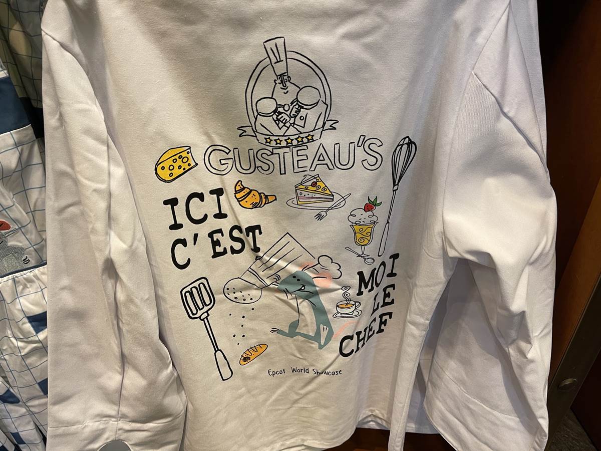This chef shirt has Remy in the front with the word Chef and artwork in the back saying “Here I am, the chef” and retails for $49.99.