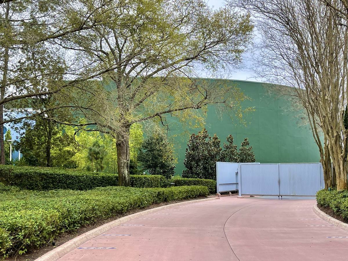 Over near the Mission: SPACE attraction, the highly anticipated Space 220 is making progress. The show building is located between both Test Track and Mission: SPACE, tucked away in the corner, but you can see that the actual entrance to the restaurant will be part of the pavilion of Mission: SPACE, with all the signage for the new restaurant currently covered up.