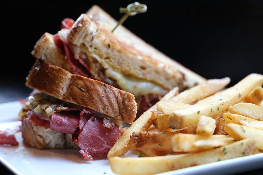 - Corned Beef Reuben -Shaved corned beef, champagne kraut, whiskey mustard, Guinness onions, Gruyere, marble rye