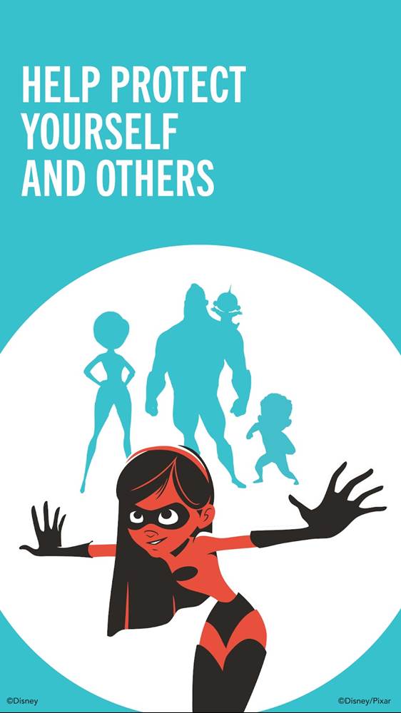 - The campaign features characters from Disney and Pixar’s The Incredibles, with characters sharing tips and reminders of important health and safety measures delivered through digital billboards, radio, TV, social media content, and more. The purpose of the campaign is to encourage all residents to adhere to current health and safety guidelines to help protect local communities.