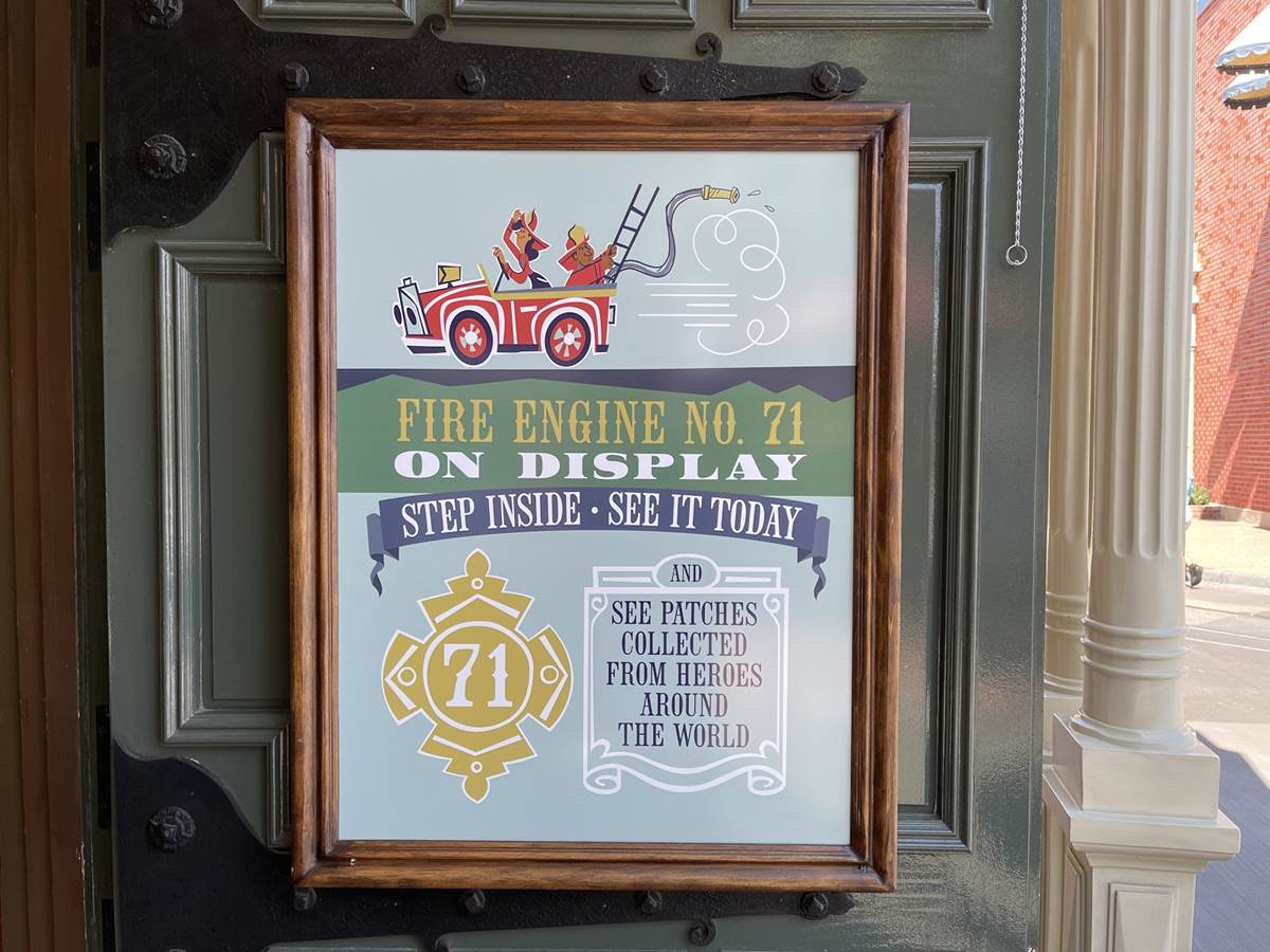 These framed pieces on the doors of the firehouse were once home to posters advertising Sorcerers of the Magic Kingdom and have now been replaced with art advertising the “open house” of the firehouse, home to Engine Co. #71.