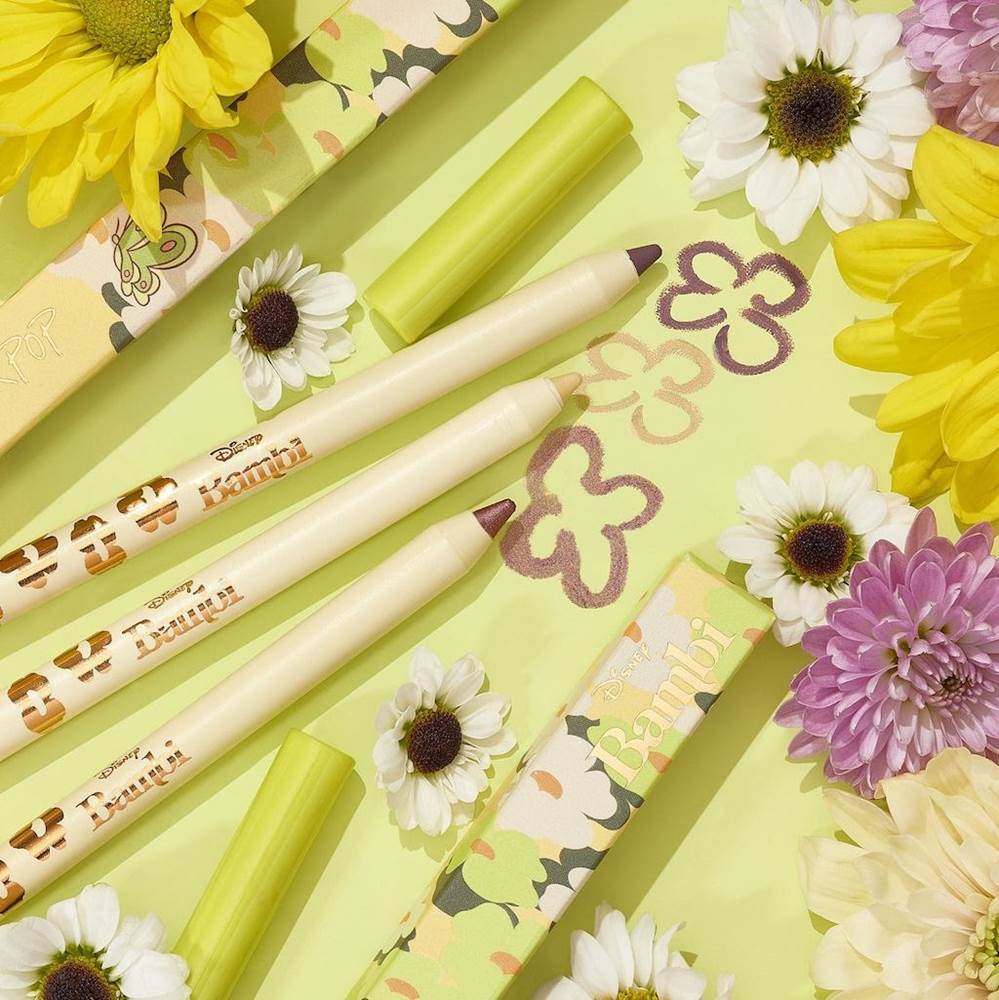 ColourPop also debuted three new eyeliner colors: purty (Flower), meadow (Bambi), and raindrops (Thumper).