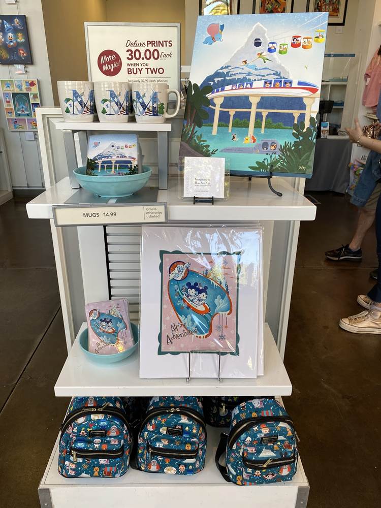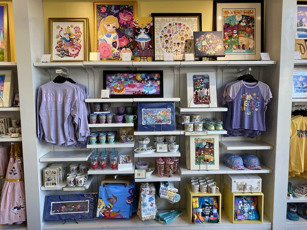 The Wonderground Gallery is still a showcase for the artists, like Dave Perillo, Leilani Joy, Joey Chou, Jarrod Maruyama, Jeff Granito, and more, but as of right now, the store is also selling stylized generic Disneyland souvenirs, and even Spirit Jerseys. The official Disneyland website says that the Wonderground Gallery will help guests “Add a dash of Disney style to your life by stopping by this boutique devoted to home décor, accessories and apparel.”