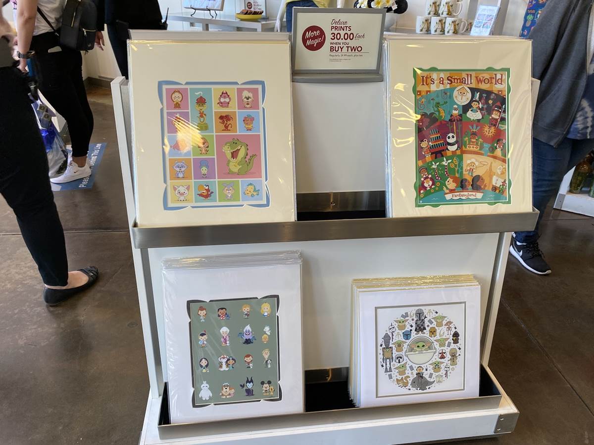 Southern Californian fans of the Wonderground Gallery may notice in the images that, in terms of artwork, there aren’t a lot of new offerings. Much of the newer content developed by Wonderground artists made a debut at the Taste of EPCOT International Festival of the Arts, and will likely appear in the newly reopened Wonderground Gallery on the West Coast in the coming weeks as the festival concludes, especially since there are newer pieces that actually celebrate Disneyland and Disneyland attractions that, due to the park’s extended closure, were made available for their debut at EPCOT.