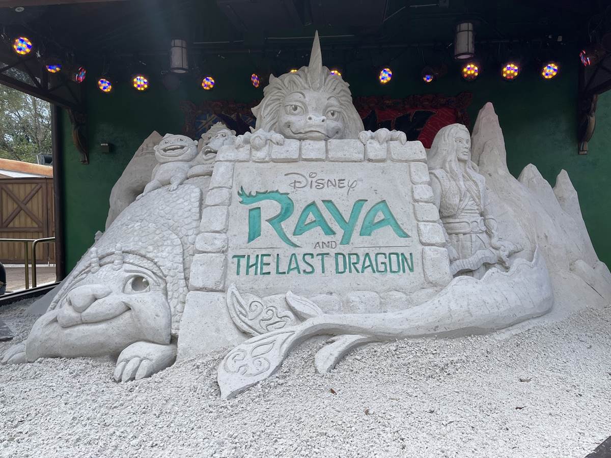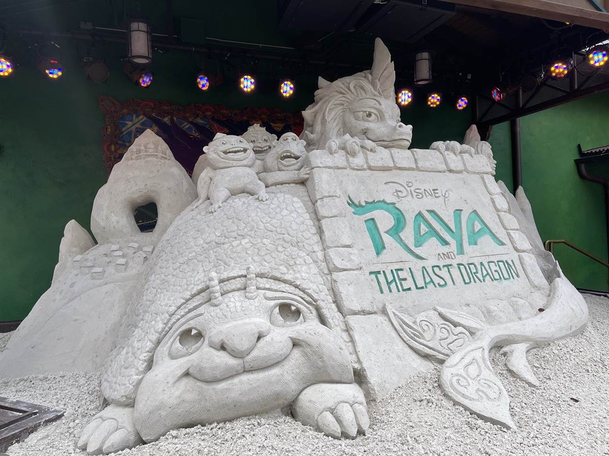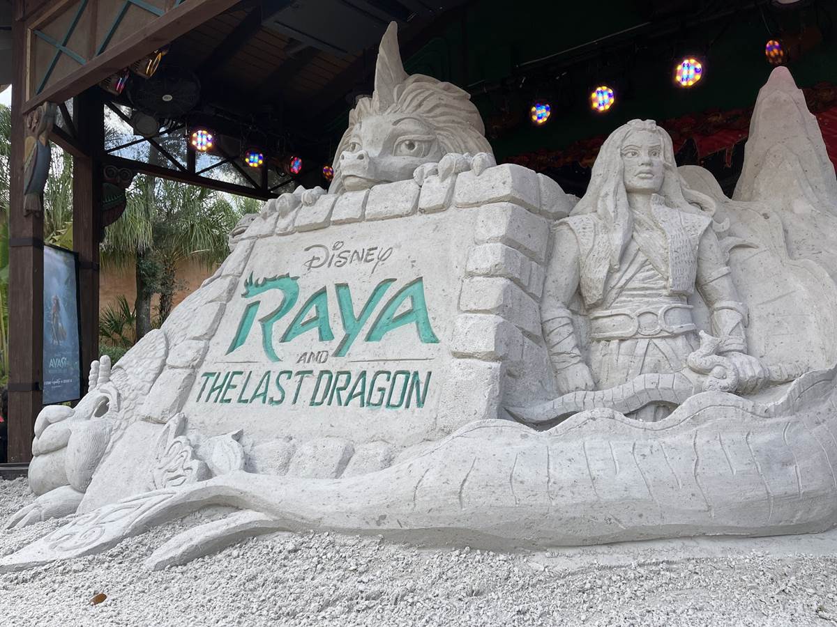 Check Out the Finished Sand Sculpture for “Raya and the Last Dragon” at Disney’s Animal Kingdom
