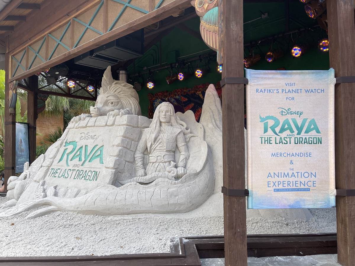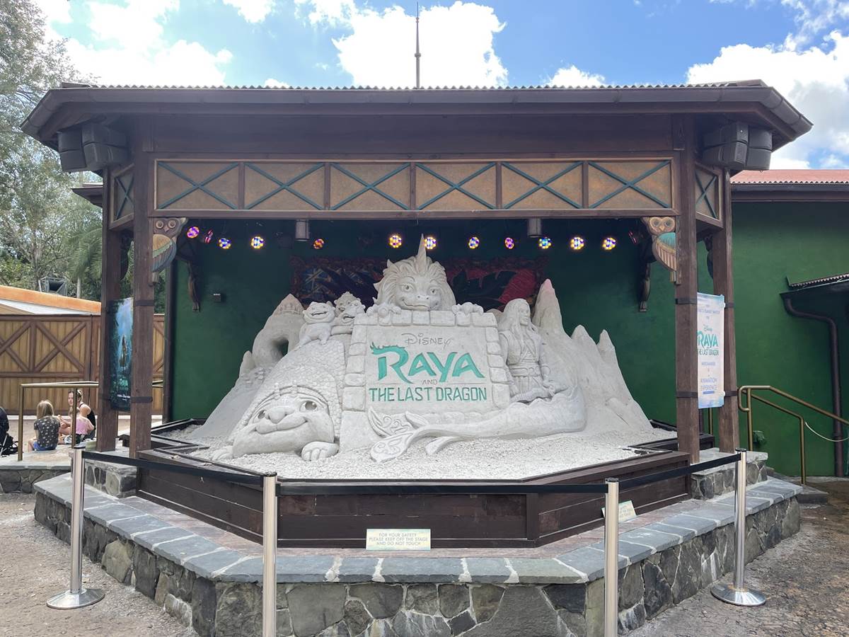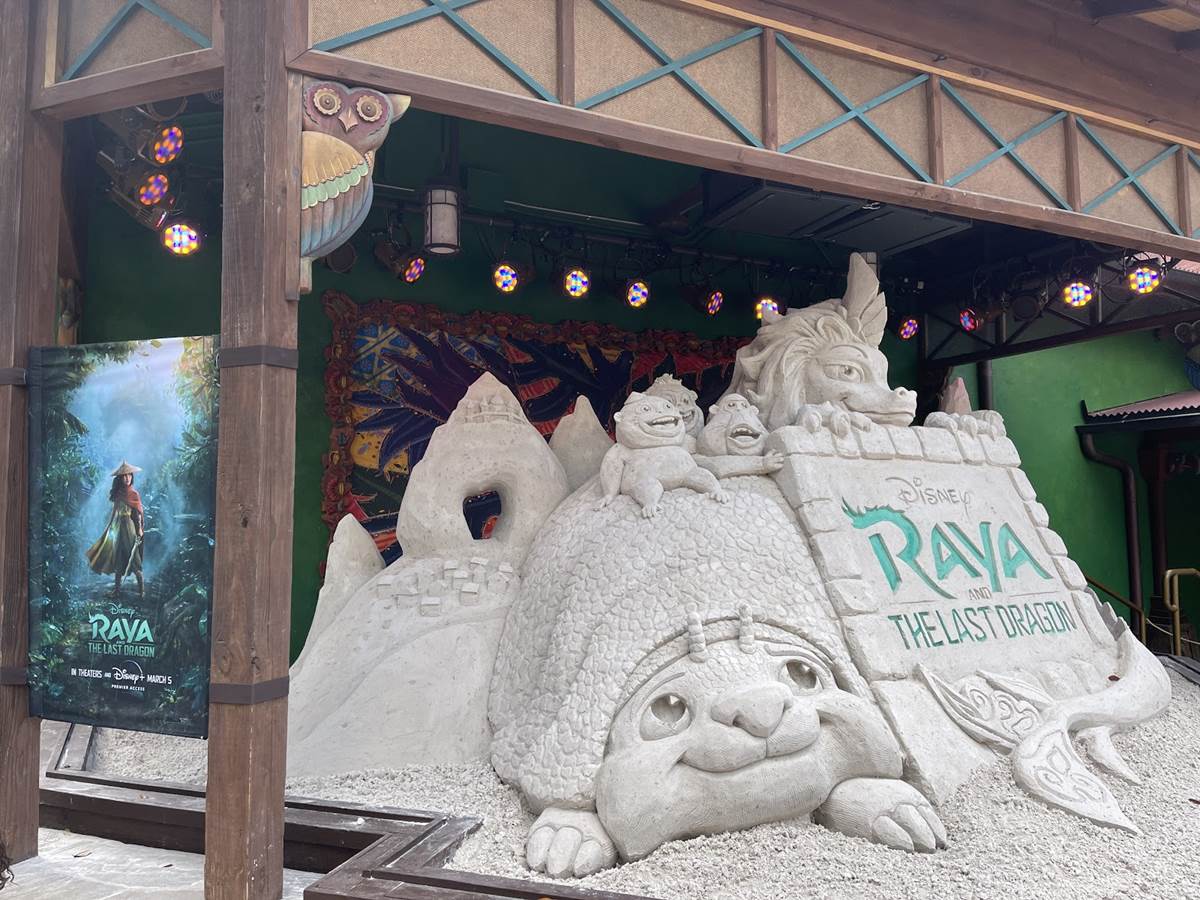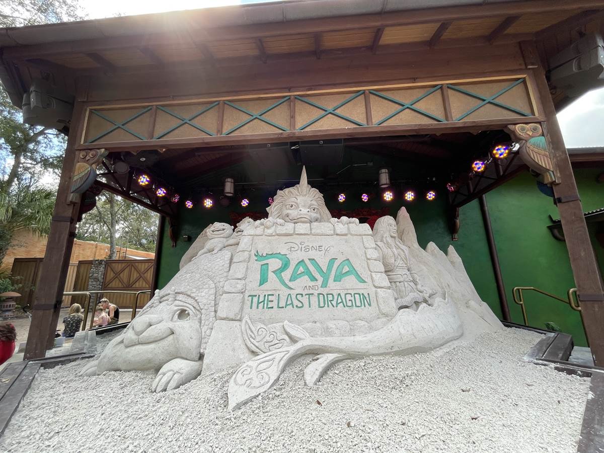 Check Out the Finished Sand Sculpture for “Raya and the Last Dragon” at Disney’s Animal Kingdom