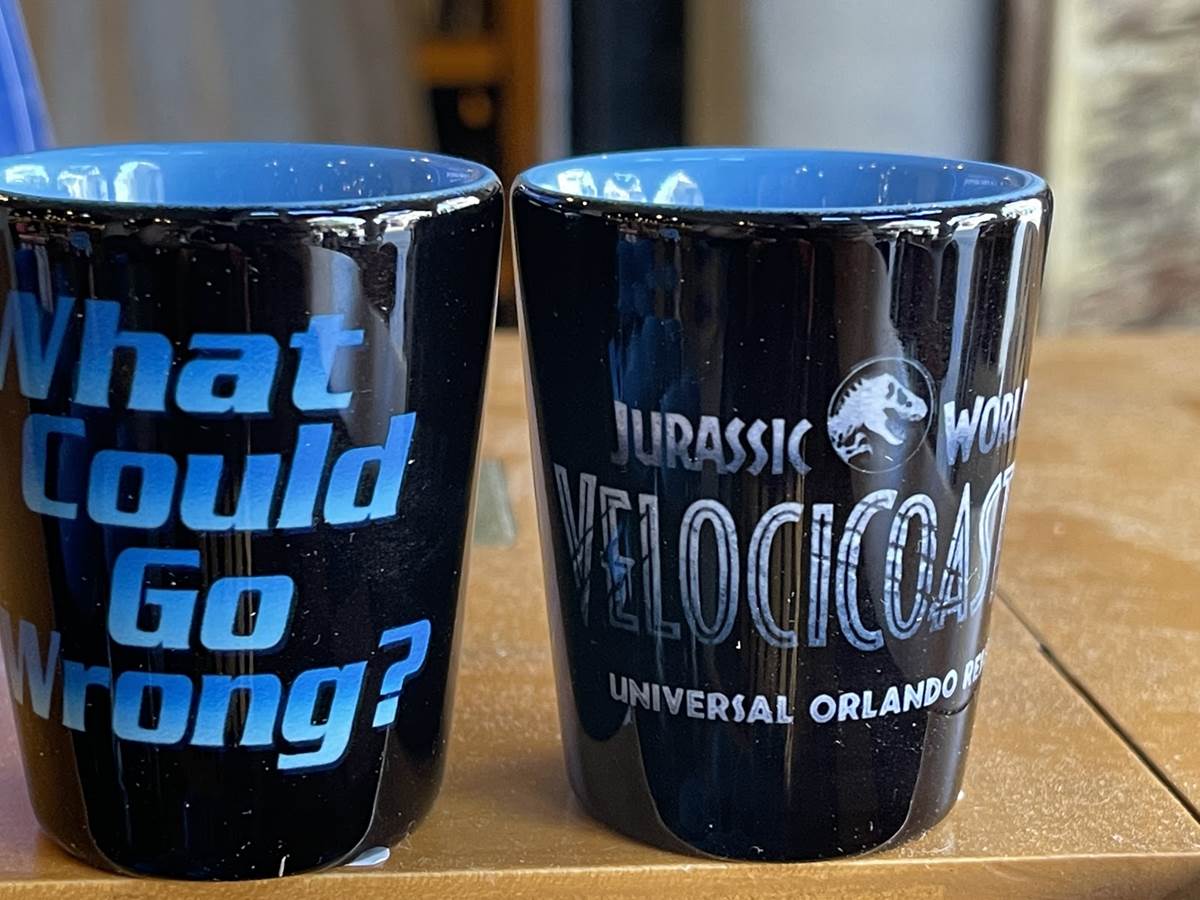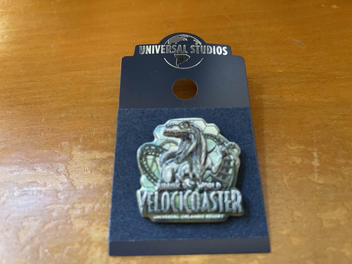 The logo, featuring a Velociraptor entangled in some coaster track, is also carried over into pins, keychains and mugs.